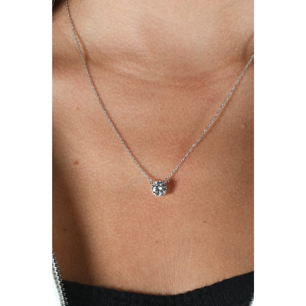 Experience breathtaking brilliance with the 1 1/2Ct Floating Solitaire Diamond Pendant. This exquisite 18-inch necklace features a stunning 1 1/2 carat lab-grown diamond, expertly set to maximize its fire and presence. With superior EF color and VS clarity, this near-colorless diamond ensures a captivating sparkle that appears to float effortlessly. Crafted in luxurious 14k gold, this pendant is a timeless and elegant statement piece, perfect for any woman's collection. Key Features: Total Carat Weight: 1 1/2 Carats (approx. 1.50 ctw) Stone Type: Lab-Grown Diamond Diamond Quality: EF (Near Colorless) / VS (Very Slight Inclusions)
