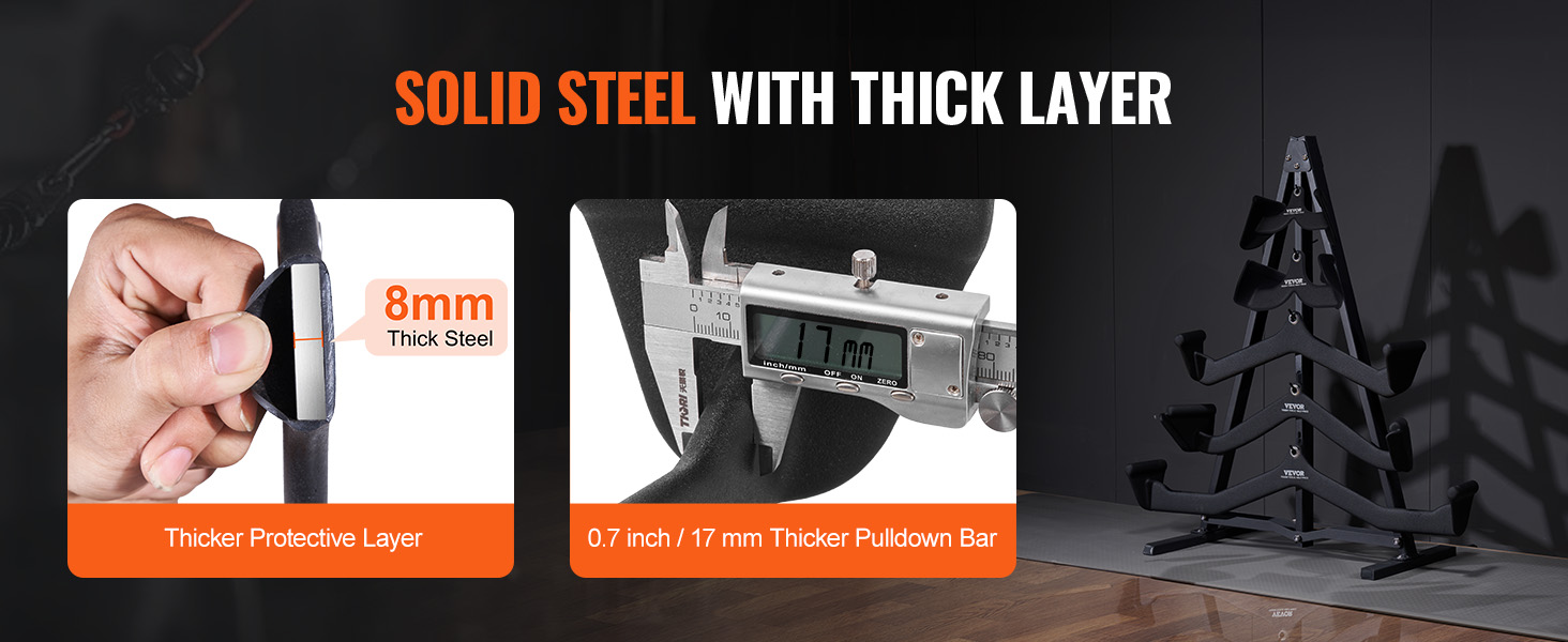 Barre en acier solide : fabriquées avec une couche protectrice épaisse et une plaque en acier solide, nos fixations de traction assurent une utilisation prolongée. L'ensemble de barres de traction présente une épaisseur fiable allant de 17 mm à son point le plus épais à 14 mm à son point le plus fin. Vous n'avez donc pas à vous soucier de la flexion ou de la fissuration. Il est suffisamment robuste pour résister aux séances d'entraînement les plus difficiles.