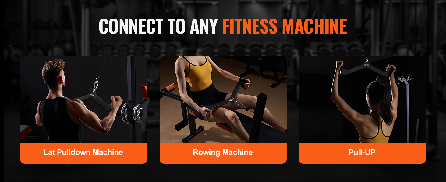 Ensemble d'accessoires de traction vers le bas : notre ensemble d'accessoires pour machine à poulie comprend 5 modèles, les numéros 2 et 3 sont des poignées à portée étroite, entraînant principalement les trapèzes et les rhomboïdes. Les numéros 4 et 6 sont des poignées à portée moyenne, et le numéro 7 est une poignée à large portée qui exerce principalement les muscles teres major, teres minor et latissimus dorsi. Répond à vos besoins à la maison ou à la salle de sport et se connecte facilement à n'importe quelle machine à câble.