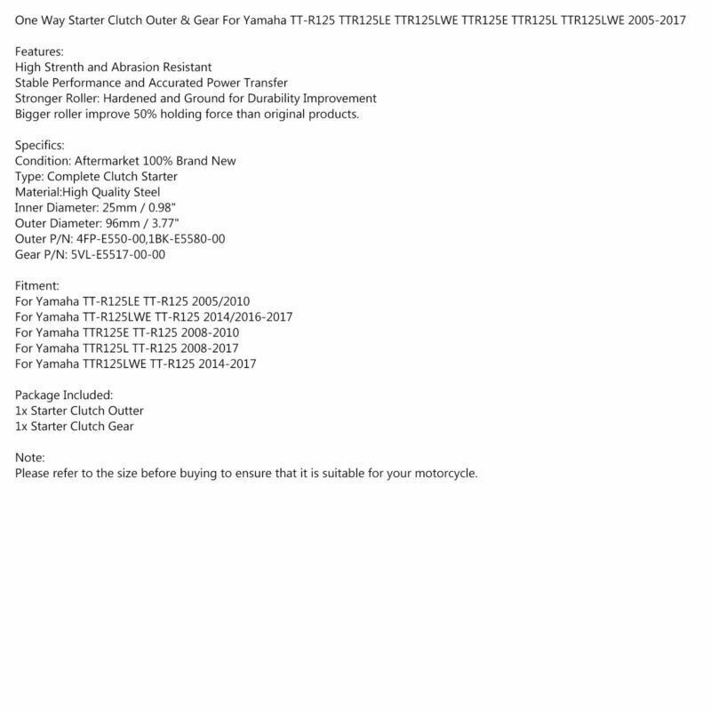 One Way Starter Clutch Outer & Gear For Yamaha TT-R125 TTR125LE TTR125LWE TTR125E TTR125L TTR125LWE 2005-2017