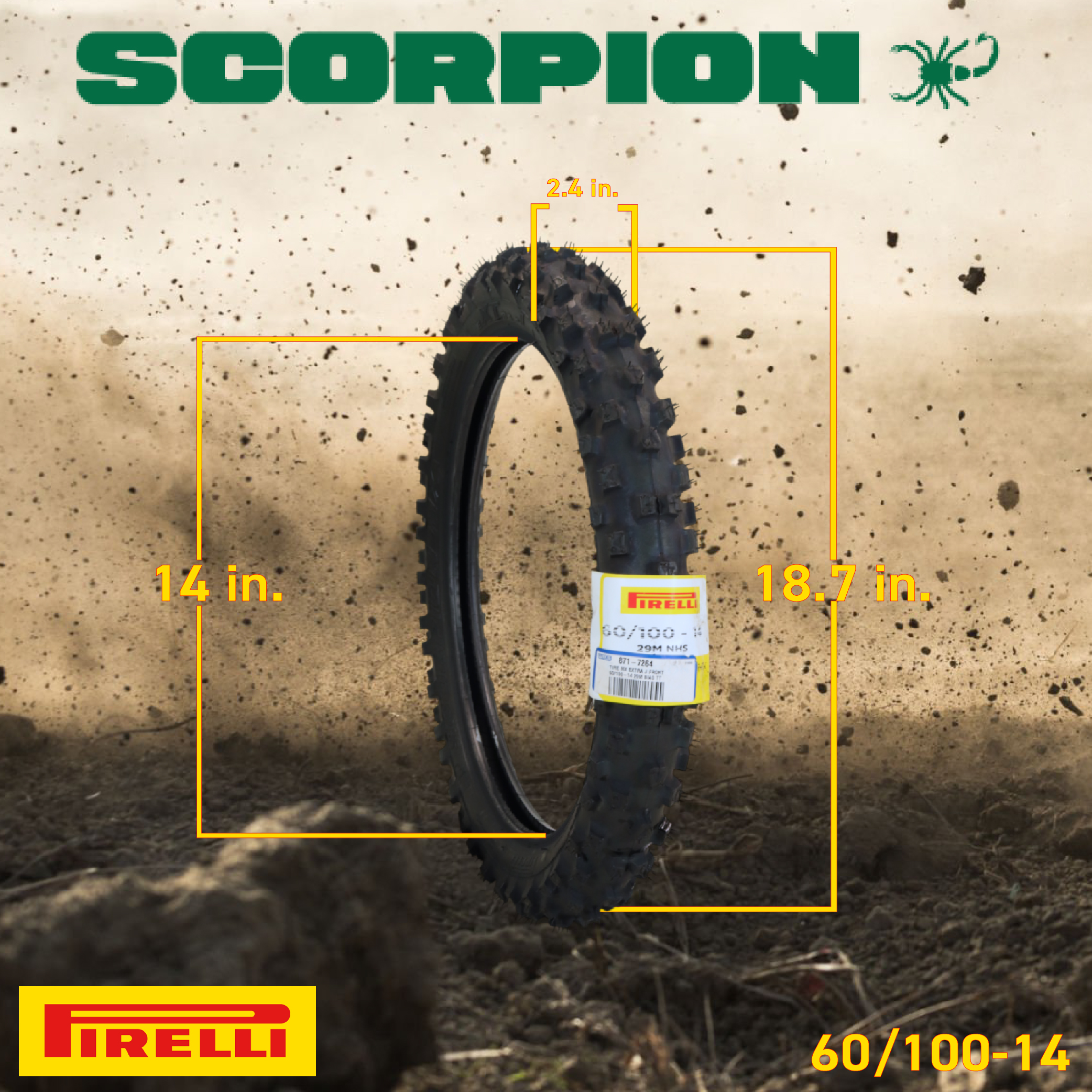 Pirelli Scorpion MX Extra J 60/100-14 Tube Type Front Motorcycle Tire, High-Performance Off-Road Motocross Tire for Enhanced Traction and Durability with KeychainSKU: 2134300 PS13K
