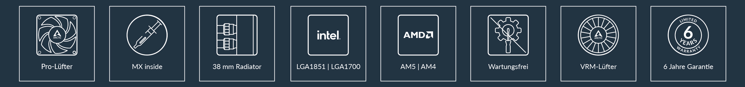 Eingeschränkte Kompatibilität mit wenigen Motherboards Einige Motherboards weisen aufgrund überdimensionierter SSD-Kühler im M.2_1-Slot Inkompatibilitäten mit dem Liquid Freezer III Pro auf. Für betroffene Motherboards stellen wir kostenfrei einen passenden M.2-Kühler zur Verfügung.