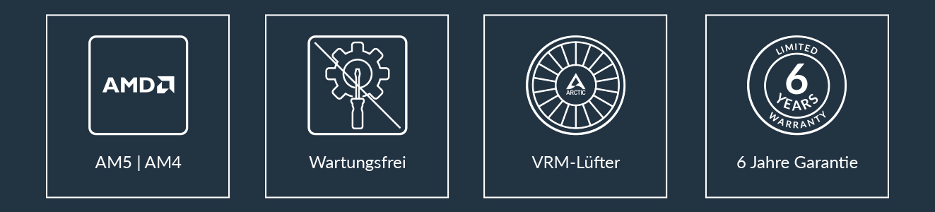 INTEGRATED VRM FAN: PWM-controlled fan that lowers the temperature of the voltage converters and thus ensures reliable performance