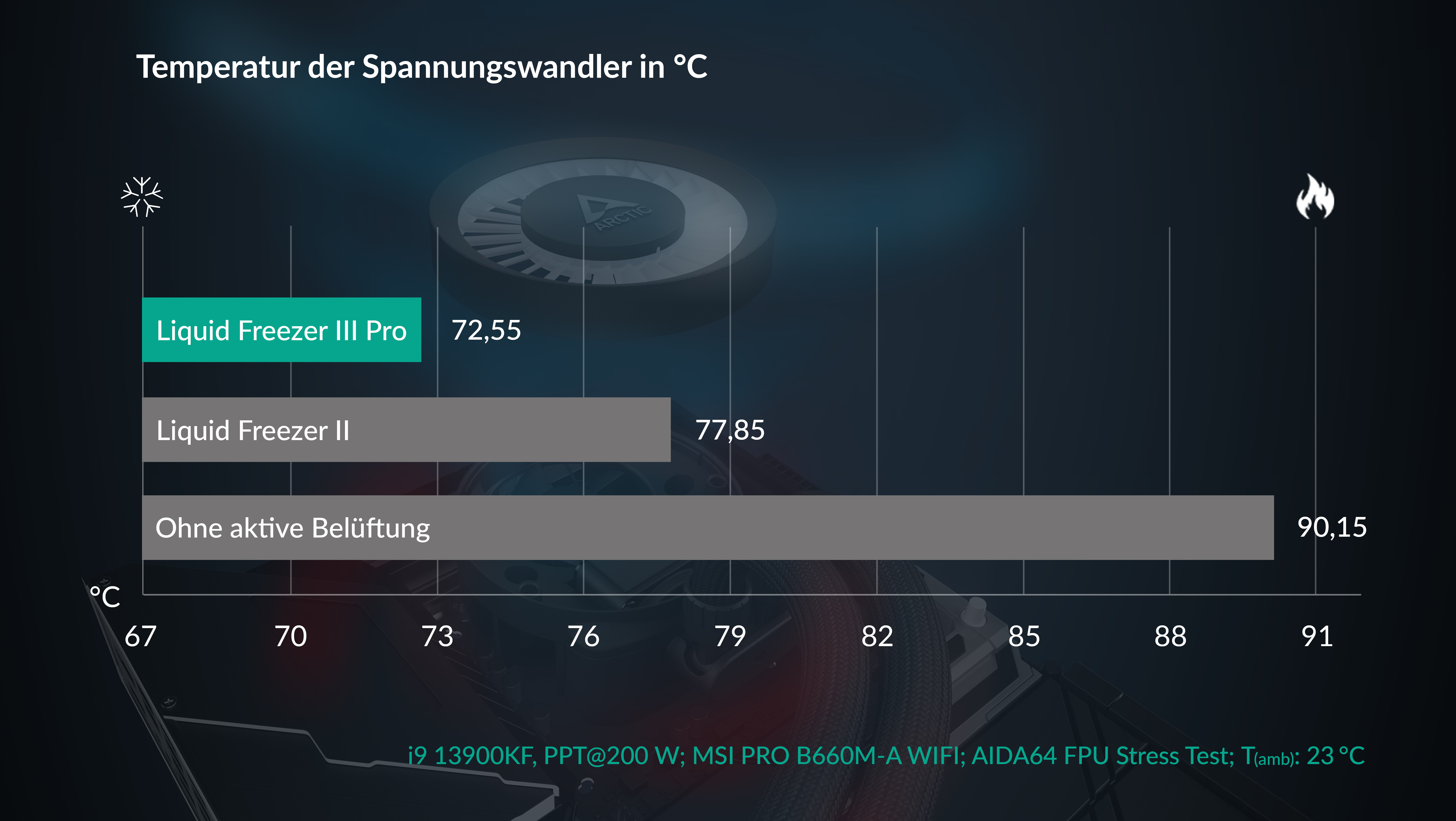 PWM-gesteuerter Lüfter, der die Temperatur der Spannungswandler senkt und so für eine stabile Leistung sorgt.