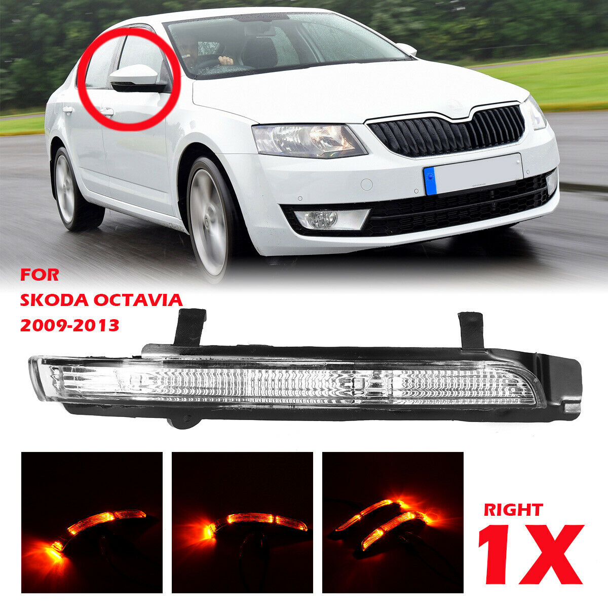 Wing Mirror LED Indicator Right Driver Side For SKODA OCTAVIA 2009>2013