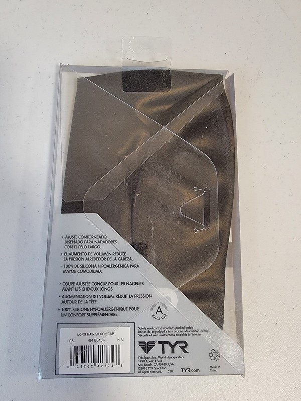 TYR Long Hair Silicone Swim Cap Black Adult Size New In Box!