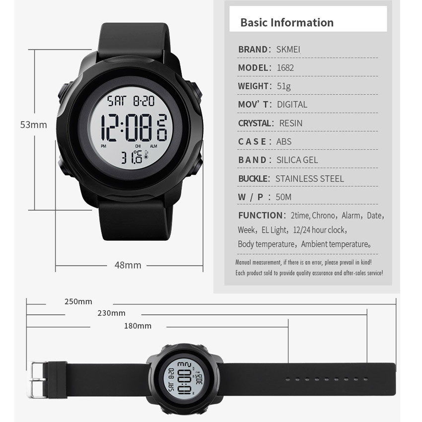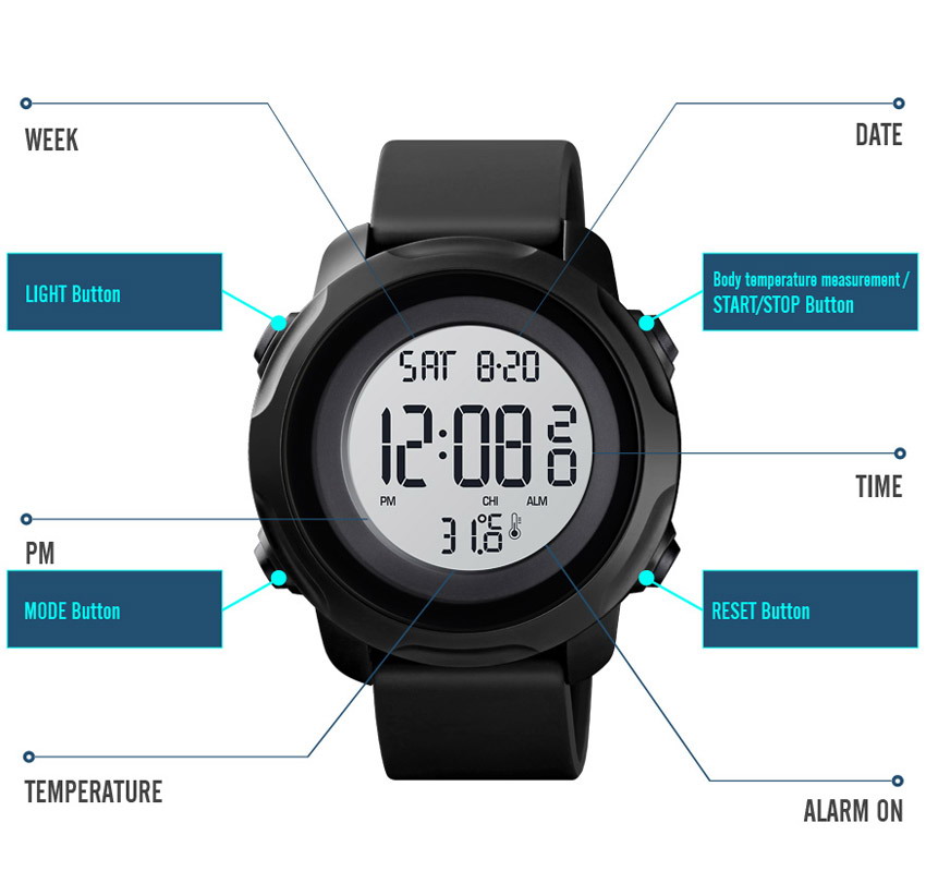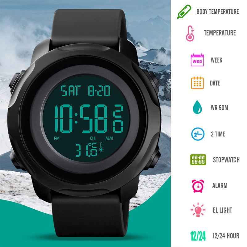 Fahsion Sport Watches Digital LED Temperature Measurement Mens Womens Wristwatch