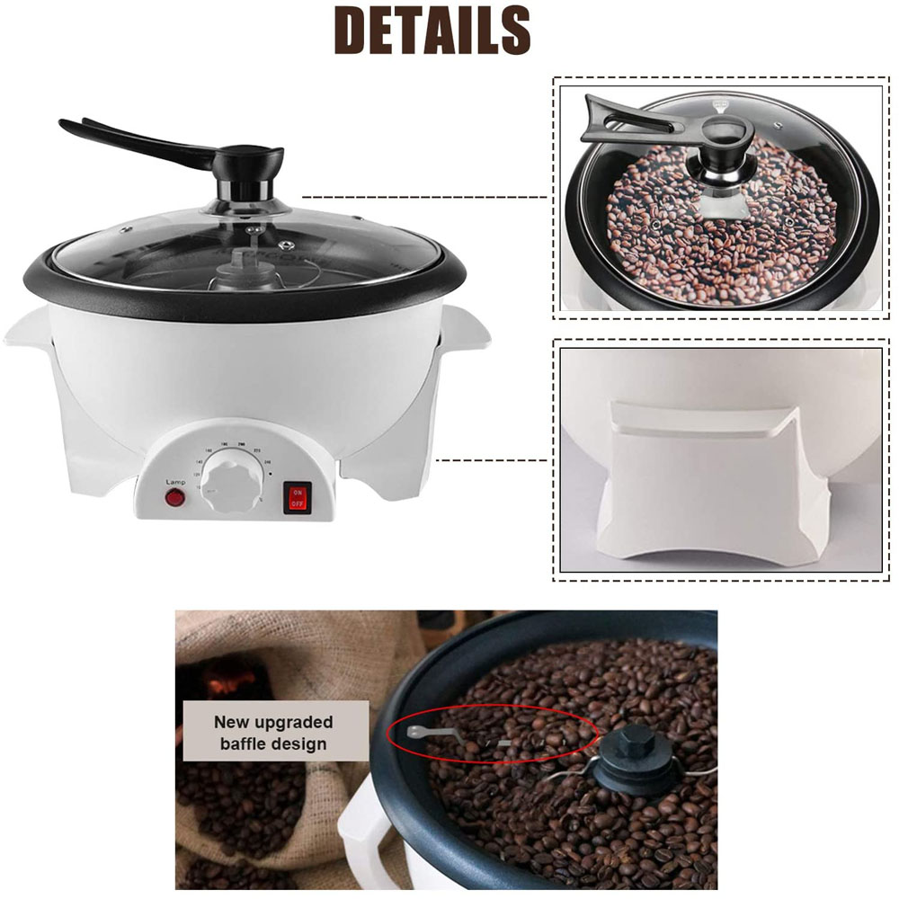★ [Wide Application] Affordable coffee been roaster machine for home use with the non-stick base ensures easy cleaning, you will not have to spend hours cleaning the interior of the commercial coffee roaster and can be used to roast many kinds of beans including peanuts, popping popcorn, raw melon seeds and so on.it is a dual-use Baking Machine that does the job well.