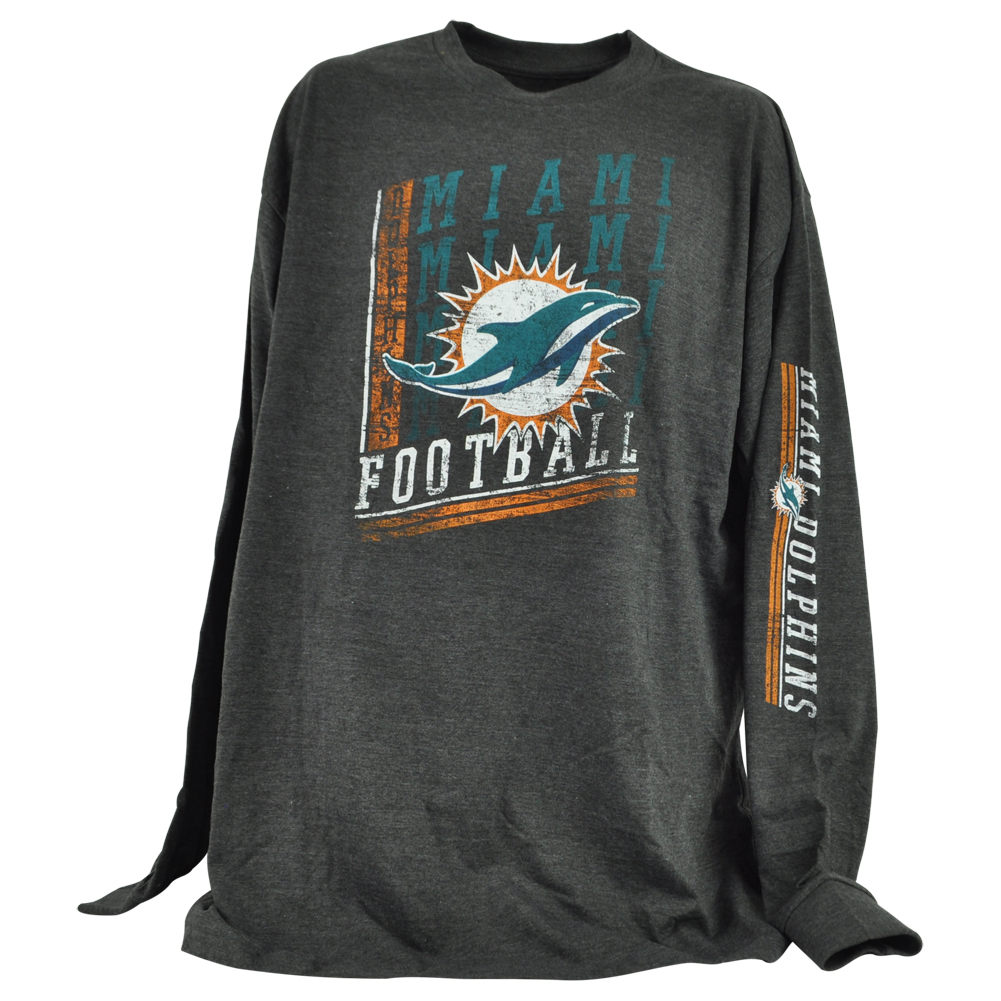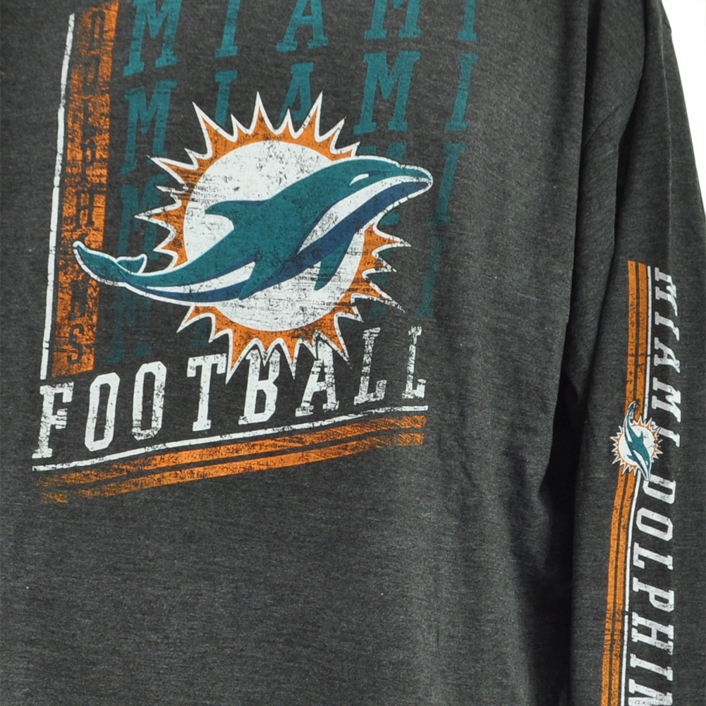 NFL Miami Dolphins Logo Football Long Sleeve Charcoal Adults Tshirt Tee