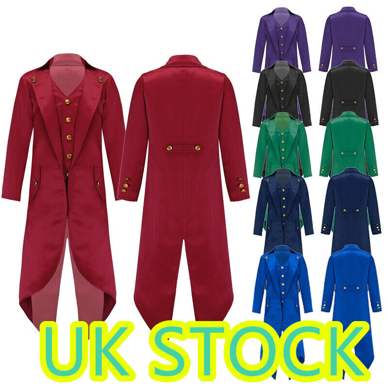 Retro gold buttons and fake pockets, long swallow tail , renaissance steampunk and Victorian vampire style.