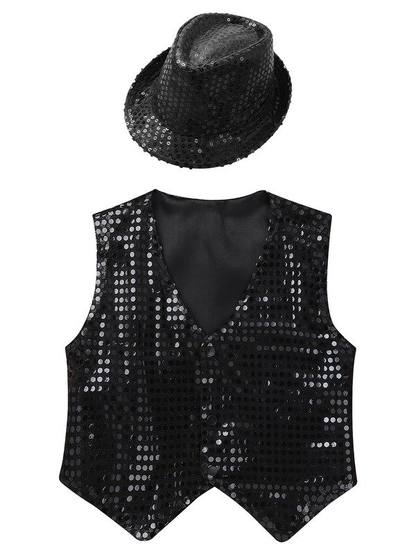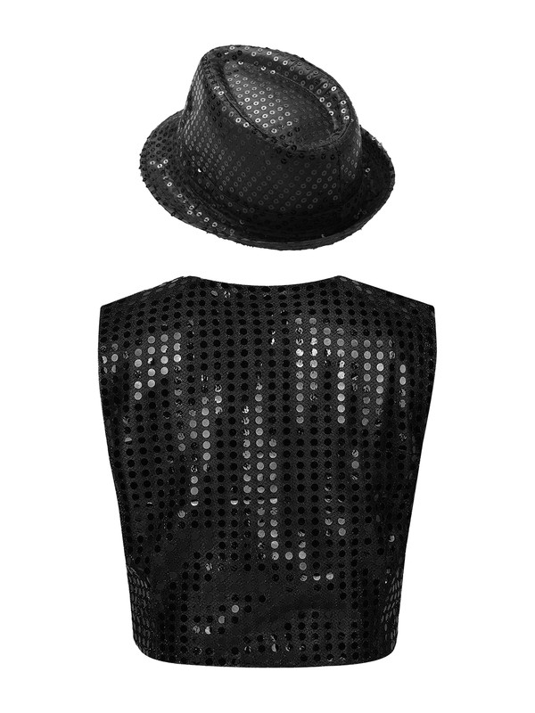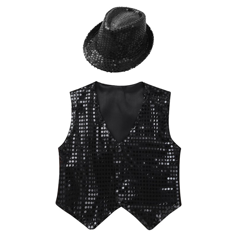 Kids Boys Glittery Waistcoat with Hat Set for Dance.