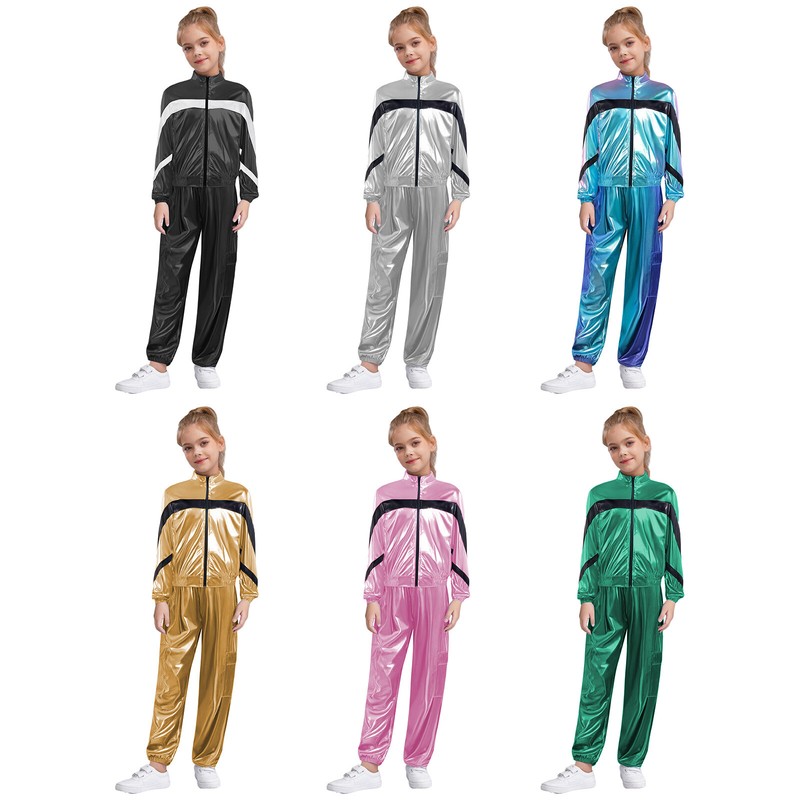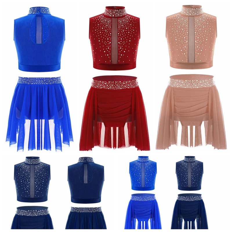 Kids girls’ lyrical dance performance outfit with rhinestones that sparkle under the light to brighten up any performance.
