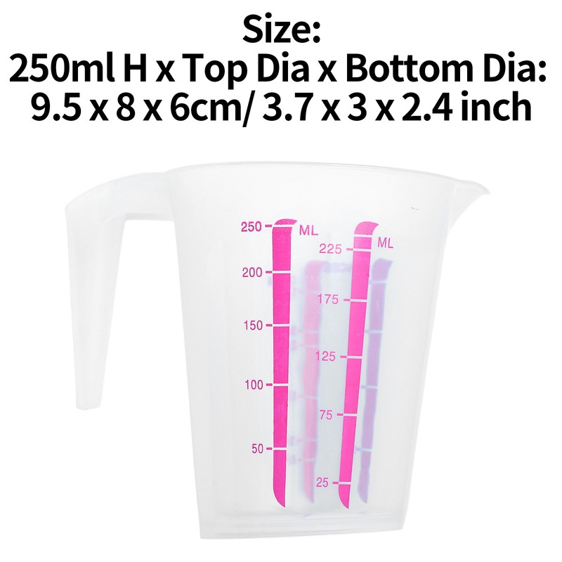 250ml:Height:Approx. 9.2cm/3.6", Top diameter(include spout): 8cm/3.1", Bottom Diameter: Approx. 5.5cm/2.1"