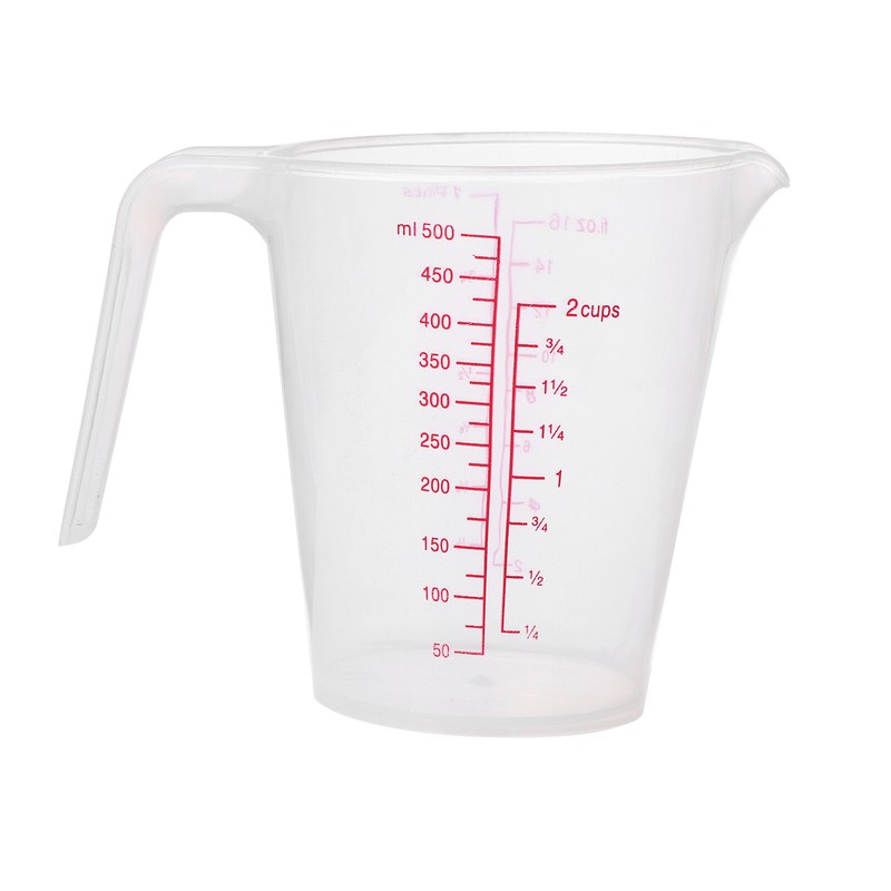 Double value design-features ounce and pints measurements on one side and a metric scale in milliliters and cup on the opposite side, for easy conversion.