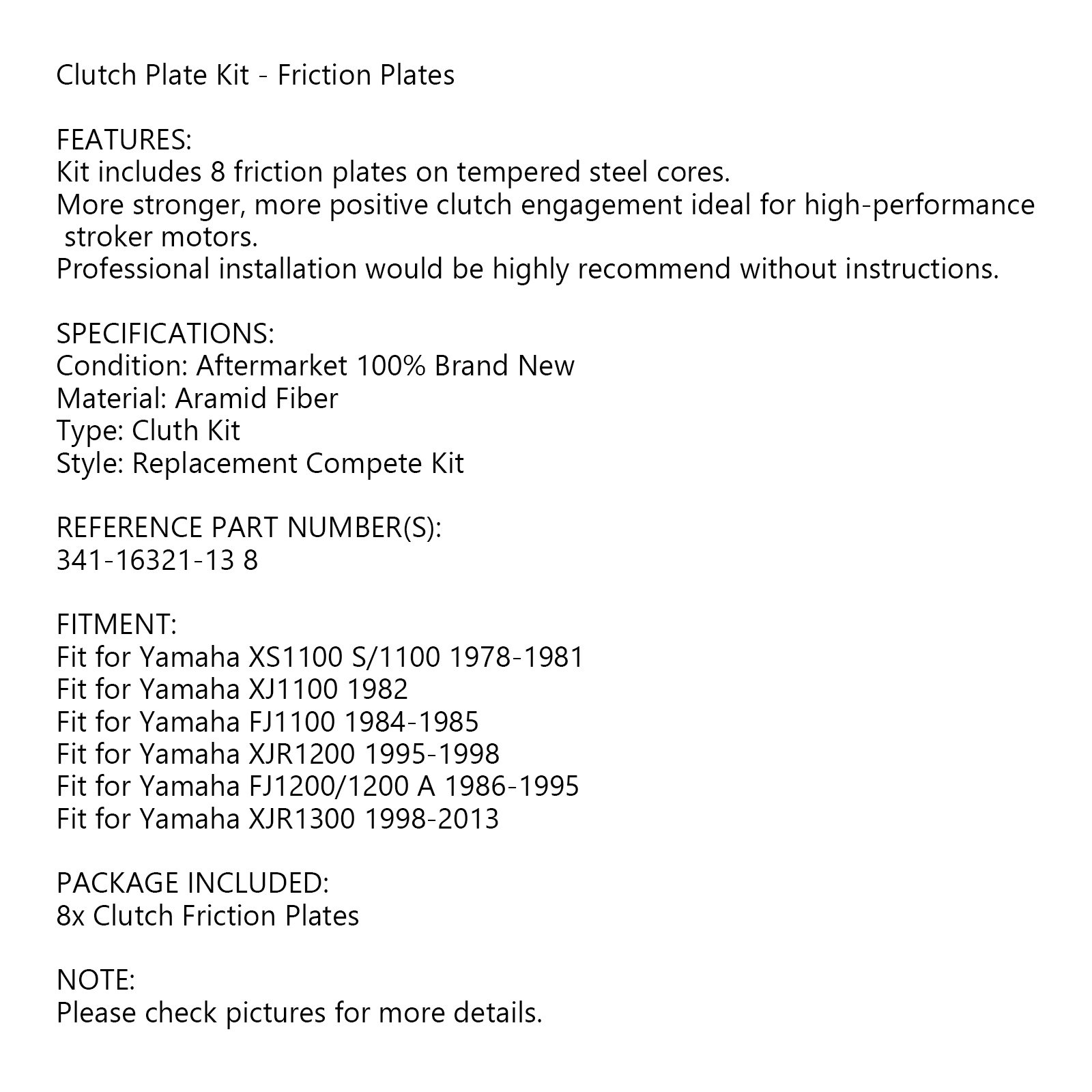 Kit includes 8 friction plates on tempered Iron cores.