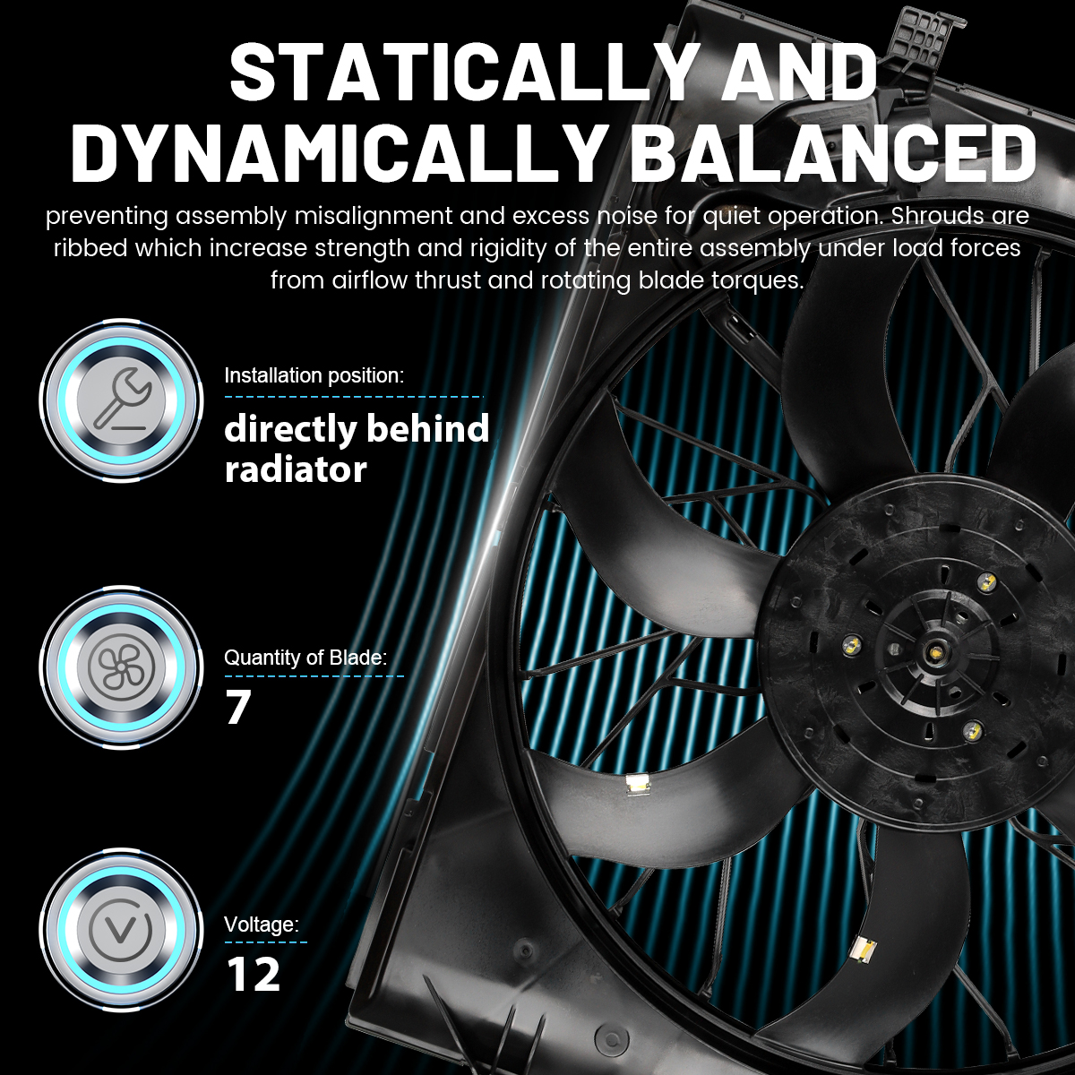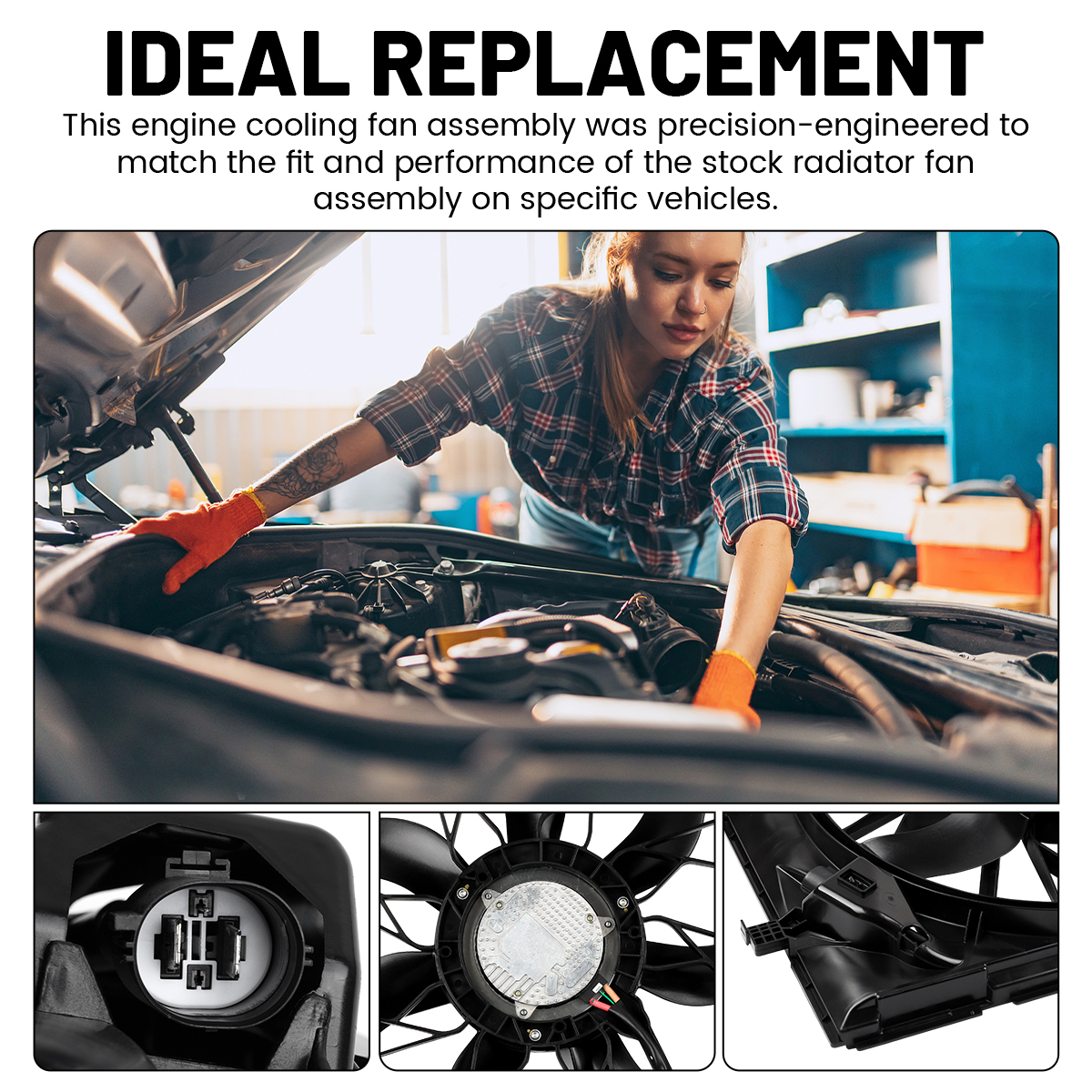 2.Ideal replacement.This engine cooling fan assembly was precision-engineered to match the fit and performance of the stock radiator fan assembly on specific vehicles.