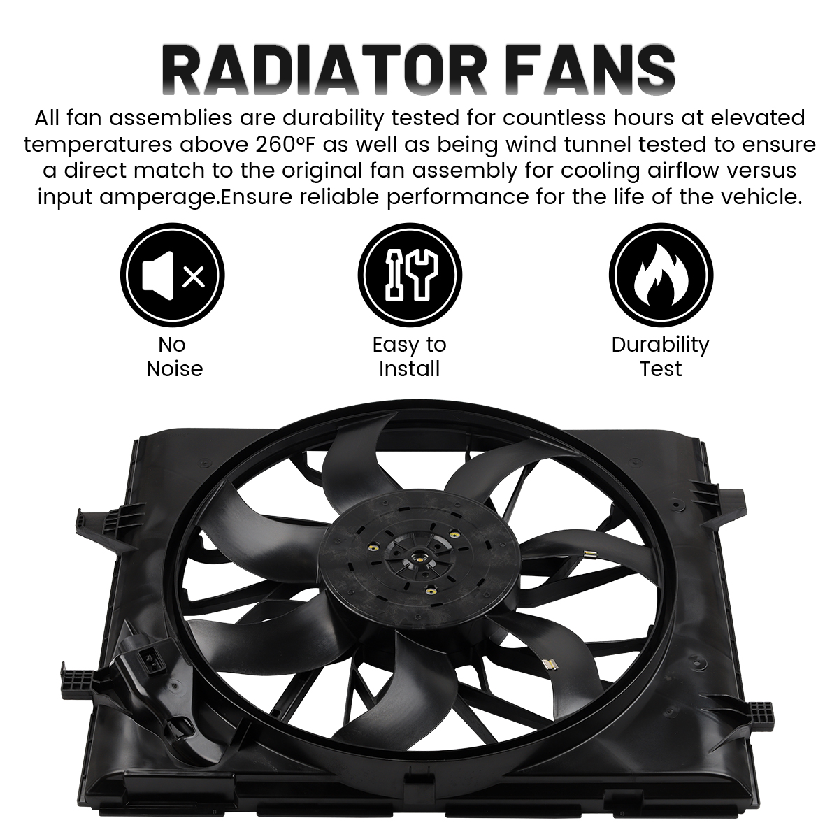 4.All fan assemblies are durability tested for countless hours at elevated temperatures above 260°F as well as being wind tunnel tested to ensure a direct match to the original fan assembly for cooling airflow versus input amperage.Ensure reliable performance for the life of the vehicle.