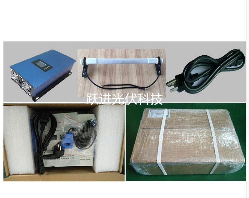 1. Windkraftnetz-Wechselrichter ---- 1St., 2. Kipplastwiderstand --- 1St., 3. AC Kabel --1St., 4. Bedienungsanleitung & Garantiekarte. 5. Begrenzersensor / Klemme / Kabel ---- optional.