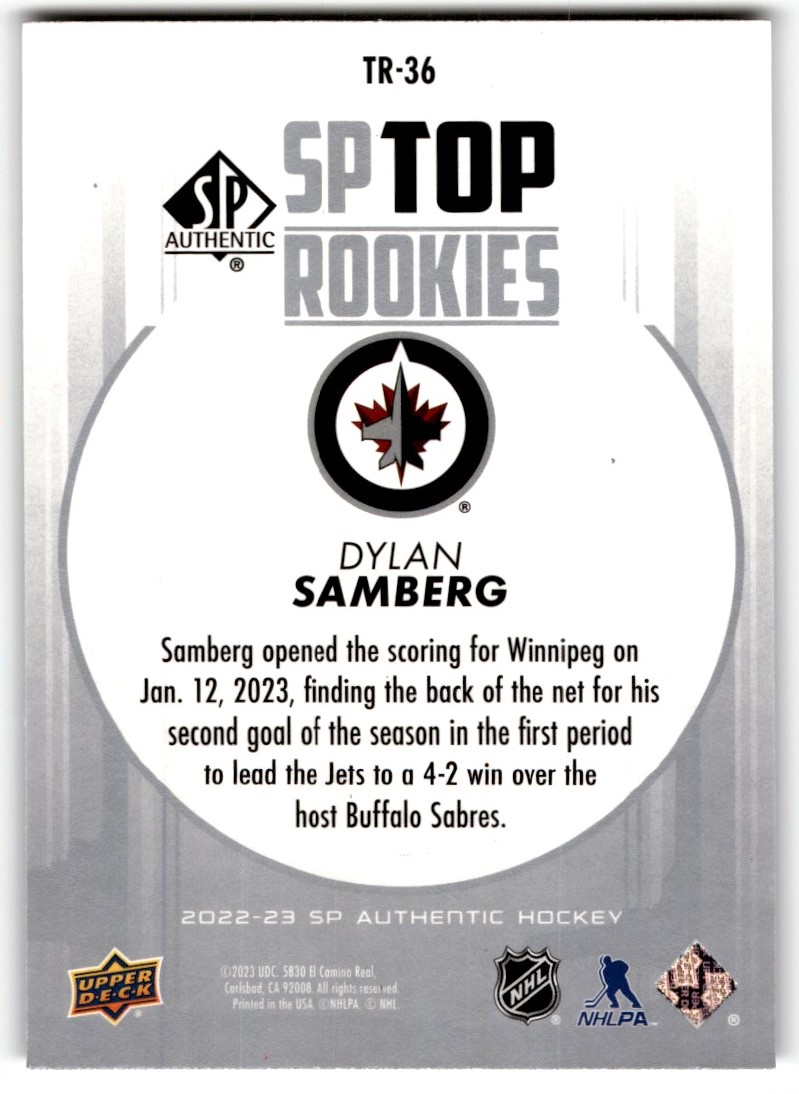 | Dylan Samberg 2022-23 SP Authentic Top Rookies #TR-36 Winnipeg Jets |