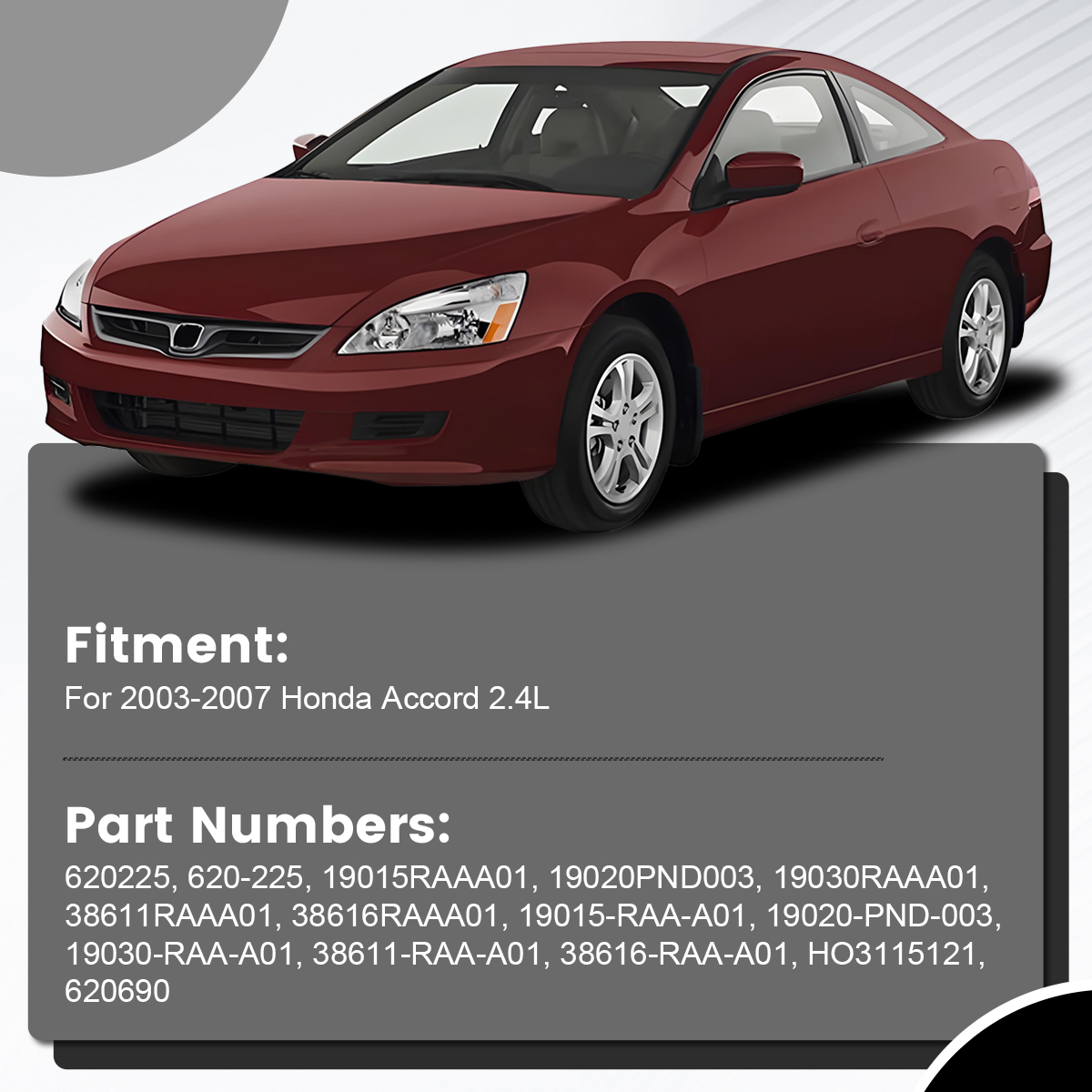 620225, 620-225, 19015RAAA01, 19020PND003, 19030RAAA01, 38611RAAA01, 38616RAAA01, 19015-RAA-A01, 19020-PND-003, 19030-RAA-A01, 38611-RAA-A01, 38616-RAA-A01, HO3115121, 620690
