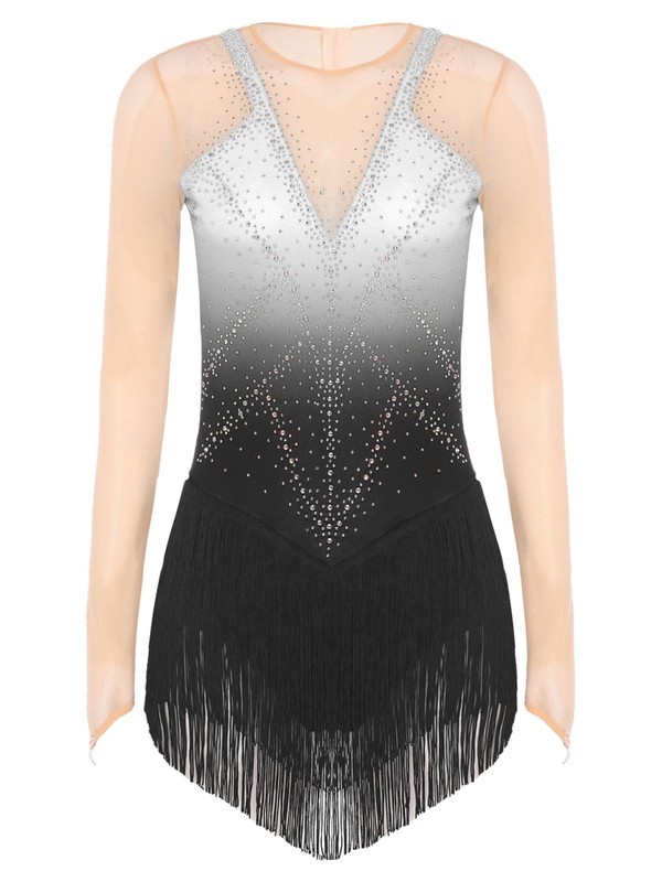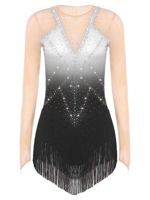 Crafted from a blend of polyester, rhinestone, and spandex, this leotard dress offers excellent stretch and durability, ensuring a comfortable and long-lasting wear.