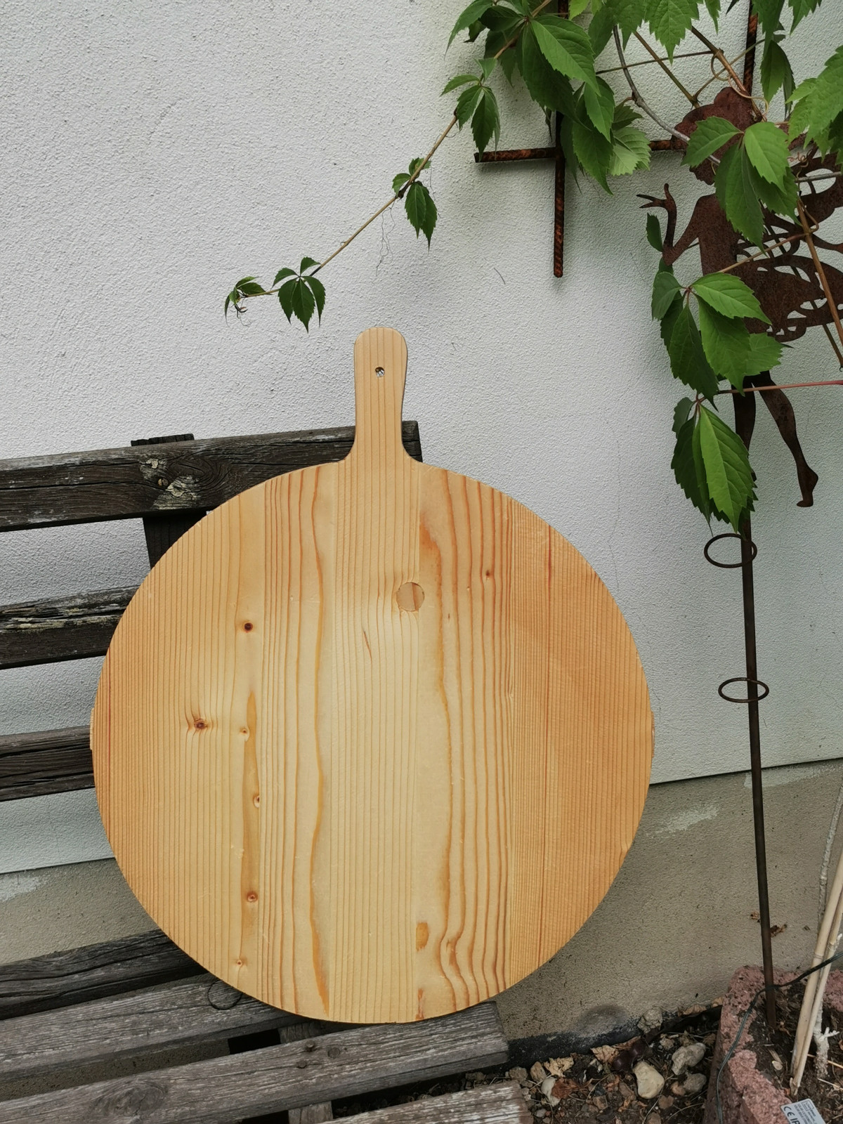 Altes Kuchenbrett Backbrett Pizzabrett Küchenbrett Schneidbrett Holz rund Ø 40 cm.