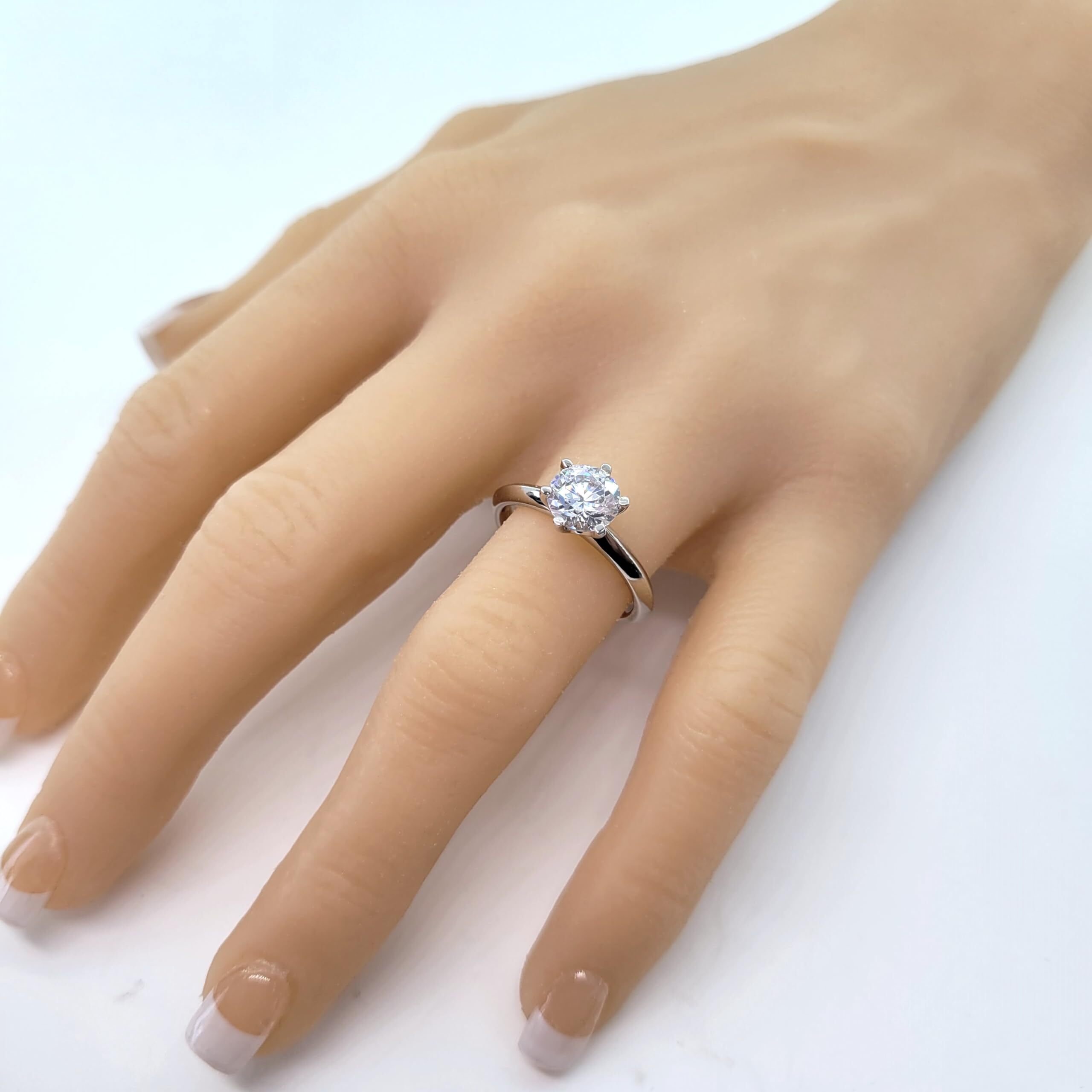 Matrix 2.00ct (8mm) Round Zirconia 6 Prong Solitaire Ring - Platinum Plated Sterling Silver - Size 6.5