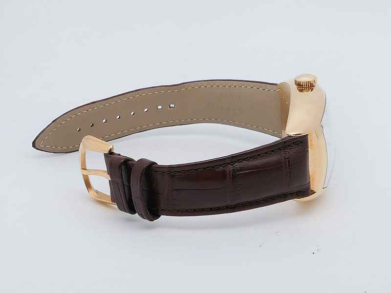 solid gold inscribed caseback. Black and Brown leather straps with Rose
