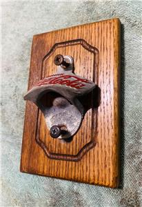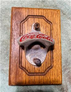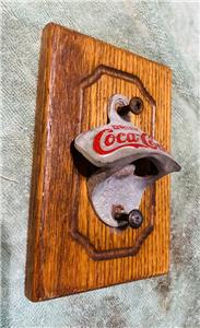 Custom Van Wall Mounted Oak Wood Panel with a Starr Coca-Cola Bottle Opener attached for Chevy Dodge Ford or GMC vans