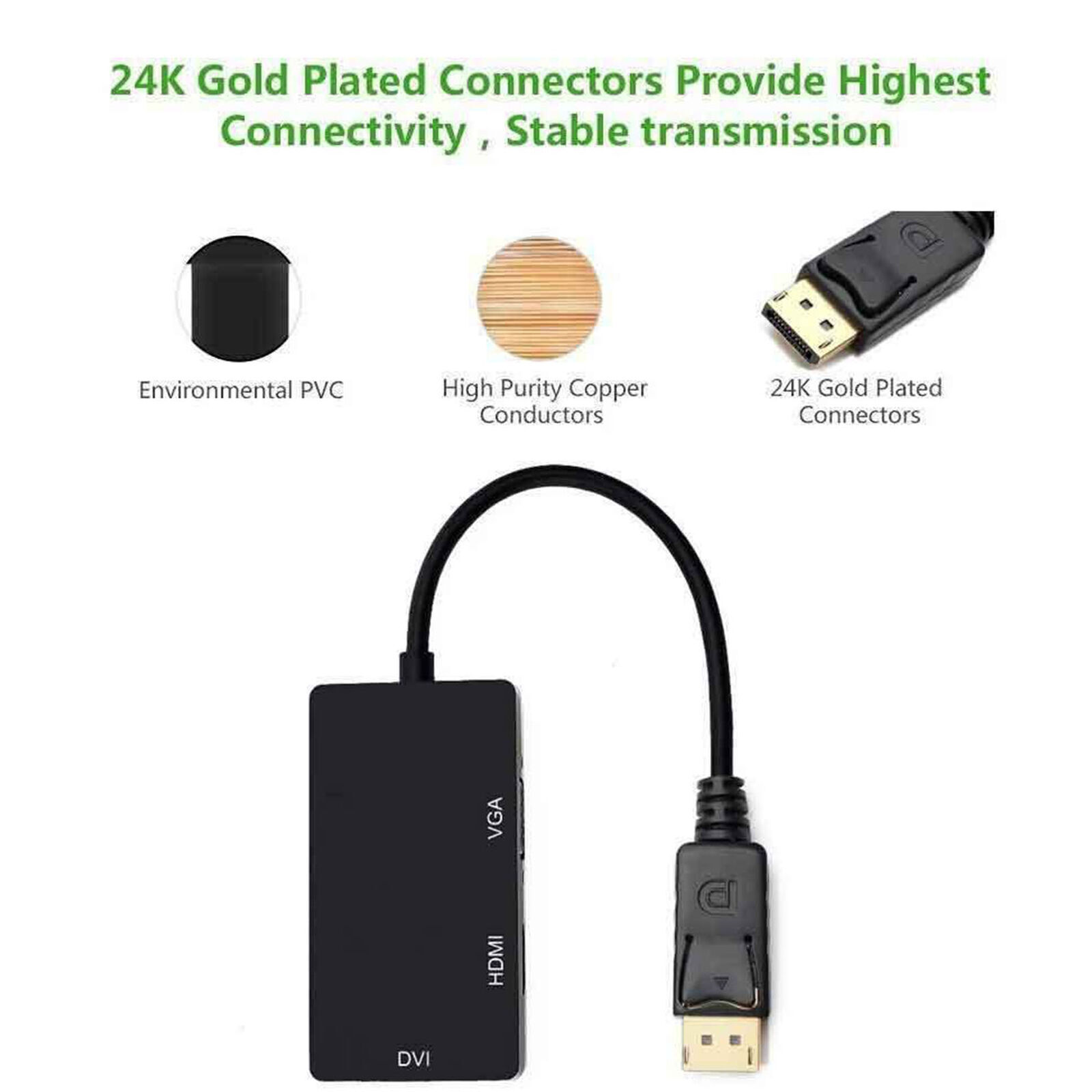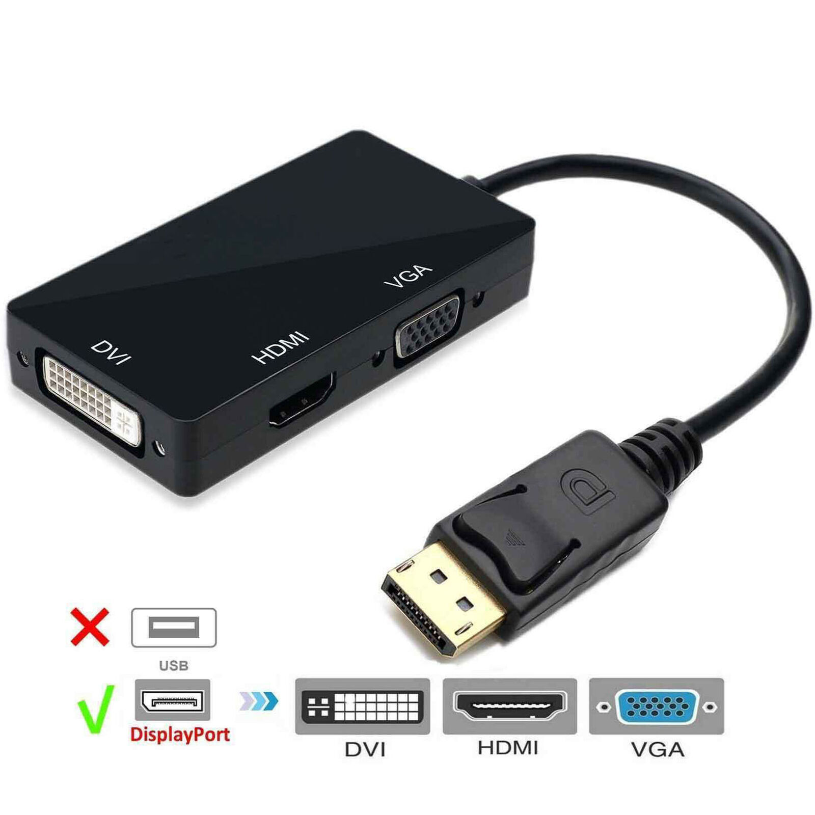 1 x Displayport DP auf HDMI / DVI / VGA Stecker auf Buchse 3-in-1 Adapter Konverterkabel