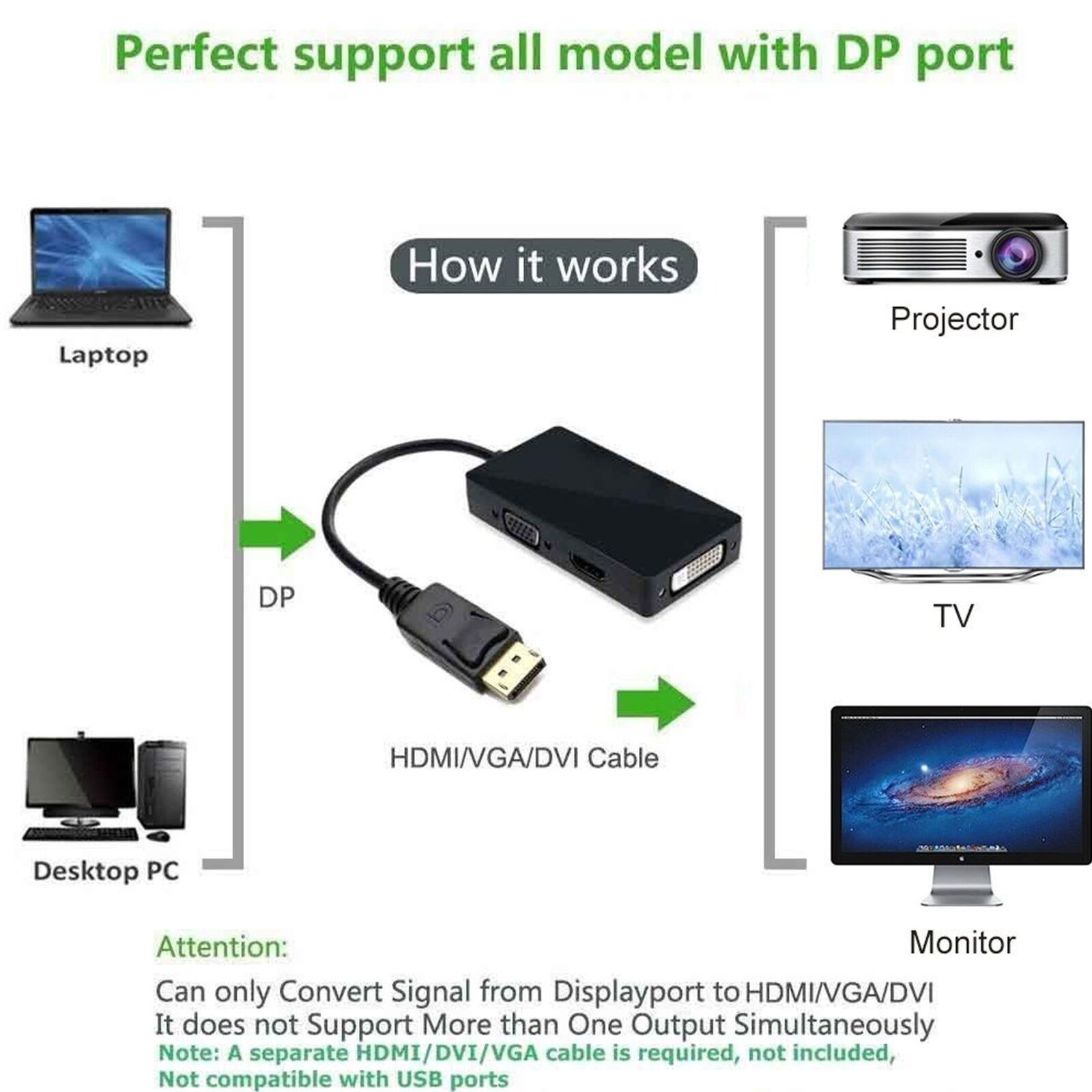 Kann nur Signale von DisplayPort nach HDMI / DVI / VGA konvertieren. Dies ist kein bidirektionaler Adapter