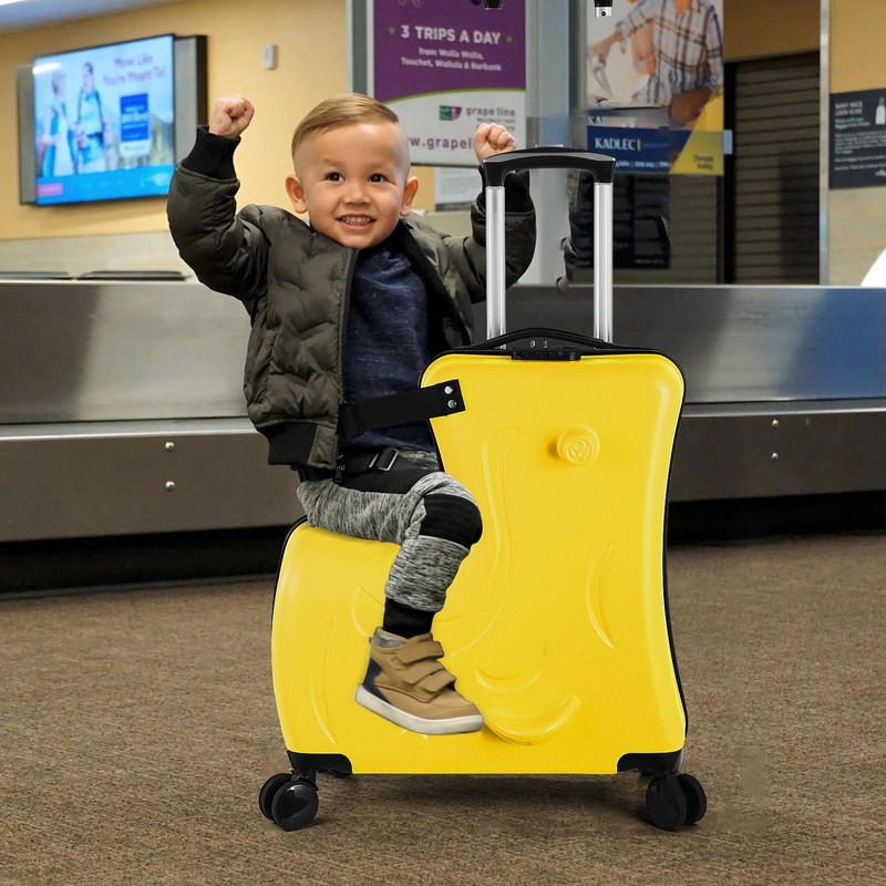 Child's Delight: Perfect for a family vacation, this ride-on kids suitcase with sturdy wheels and a handle is easy for kids to maneuver and parents to carry