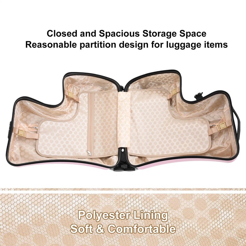 Family-Friendly Travel: This ride on kids suitcase provides spacious and practical storage for both children and parents' clothing. The enclosed space on both sides ensures easy packing and instant access, making travel convenient