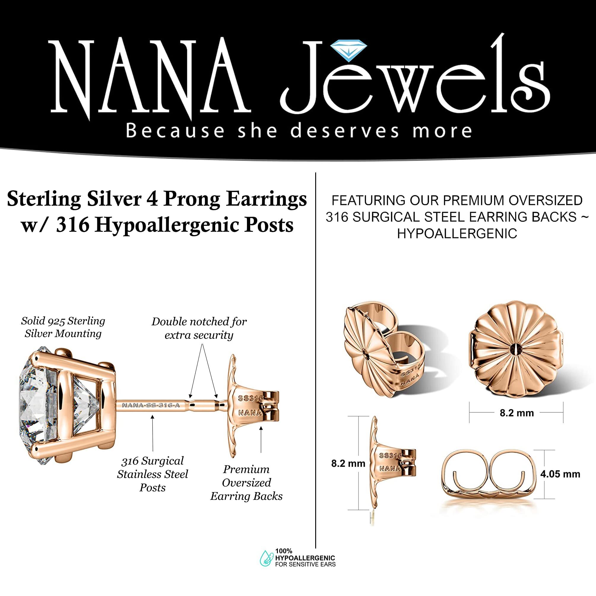NANA Jewels Round Simulated Diamond Stud Earrings Hypoallergenic Metal & Sterling Silver CZ - 3.50mm (0.30cttw) Rose
