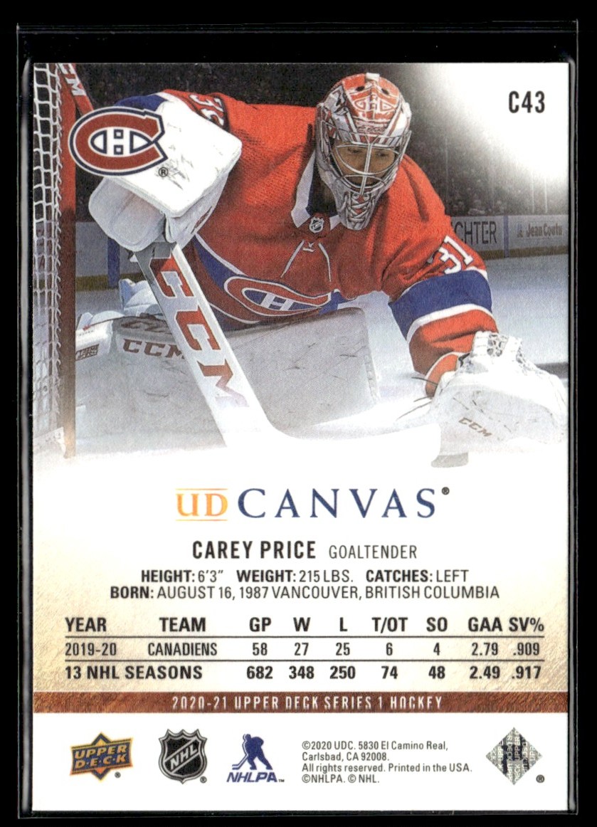 2020-21 Upper Deck UD Canvas Carey Price Montreal Canadiens #C43