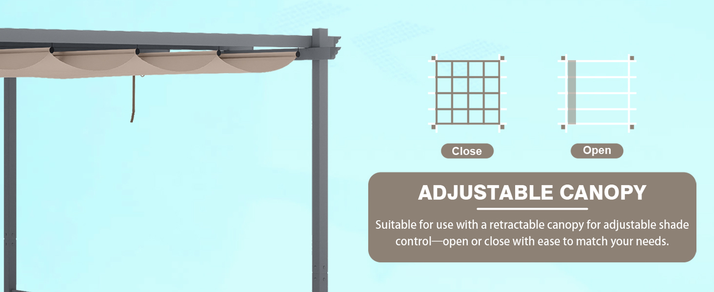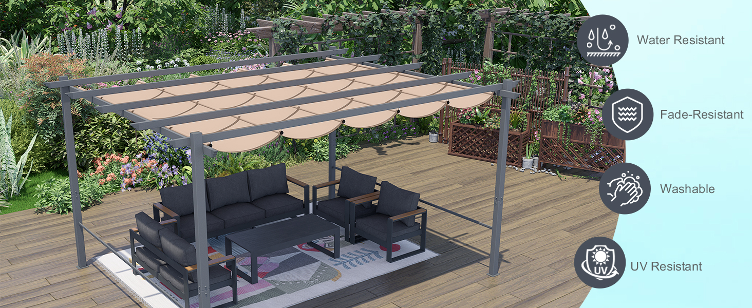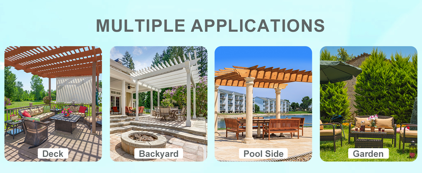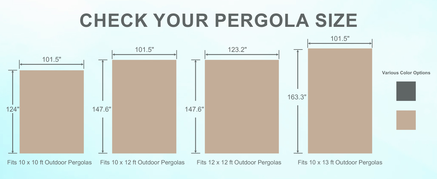【Fit for More Pergolas】- 4 exact sizes (10x10ft/10x12ft/10x13ft/12x12ft) & neutral Brown/Gray colors match mainstream brands and outdoor décor styles. Measure your pergola now, find your size in product images