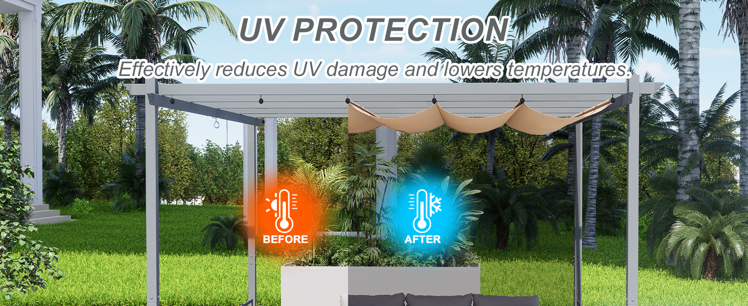 【15°F Cooling Effect】- Reflects solar heat to reduce temperatures beneath your pergola, allowing comfortable lounging even during 90°F+ peak hours