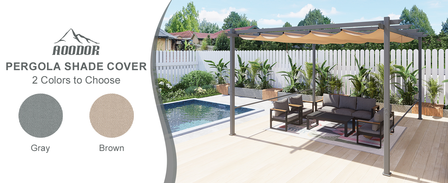 Aoodor Pergola Replacement Canopy Retractable Sun Shade Cover for Outdoor Patio