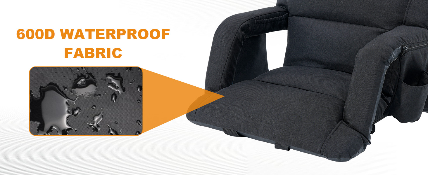 【STADIUM SEATS FOR BLEACHERS】The Stadium Seat is made of high quality linen fabric, high density foam filling and steel tube, has a waterproof and non-slip bottom, you can always enjoy dry, clean seats even in outdoor wet environments. You can safely keep dry and watch your favorite football, basketball, baseball games or any sports, whether indoors or outdoors on stadium seat chair with reclining back and arm support and seat