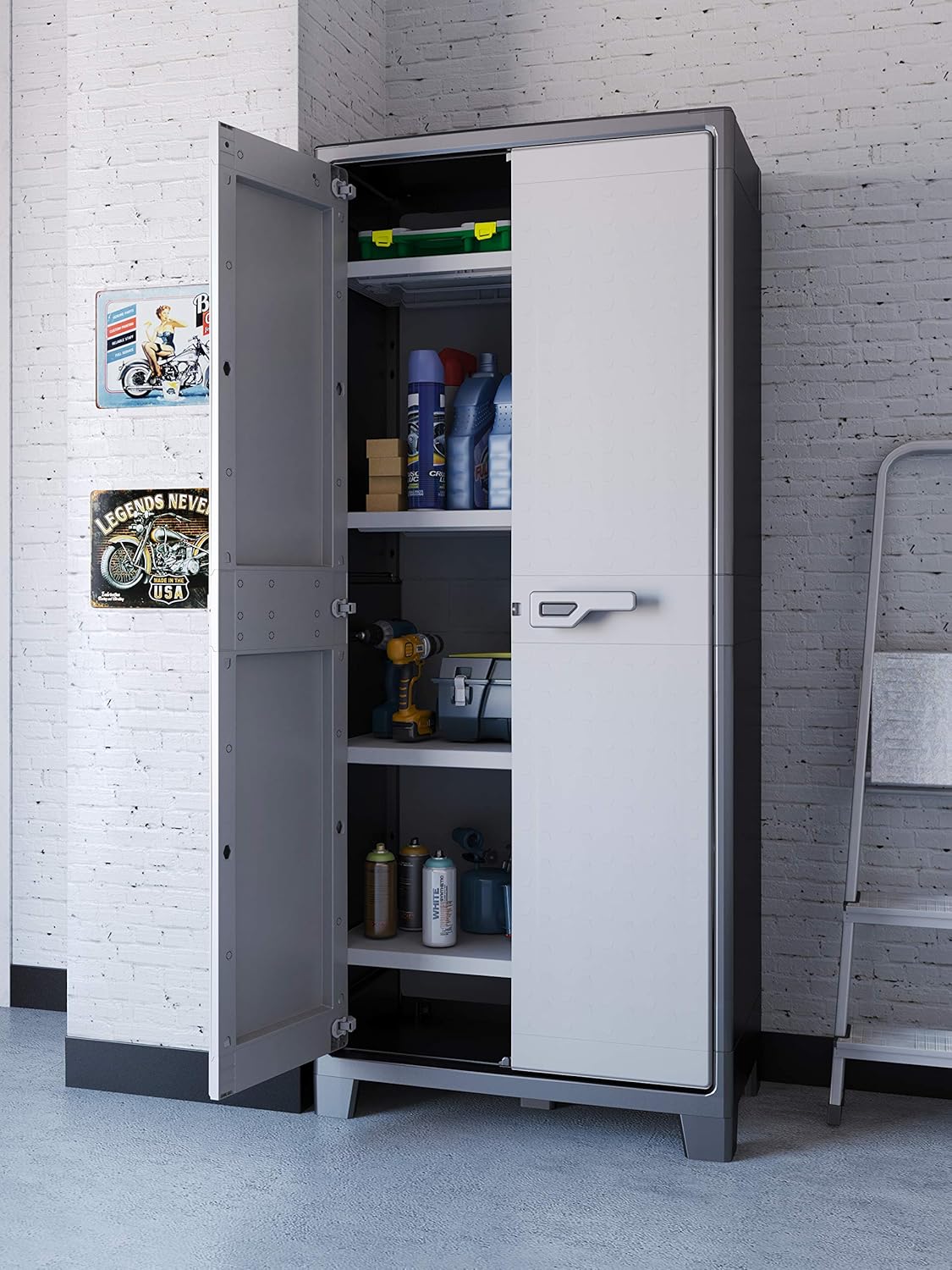 Erstverfügbarkeit: 30. September 2020 Marke: KIS Farbe: Grau Material: Kunststoff Stil: Modern Größe: 44 x 80 x 182 cm Anzahl der Türen: 2 Anzahl der Schubladen: 2 Anzahl der Teile: 1 Produktgewicht: 16,5 Kilogramm Art des Untergestells: Beine