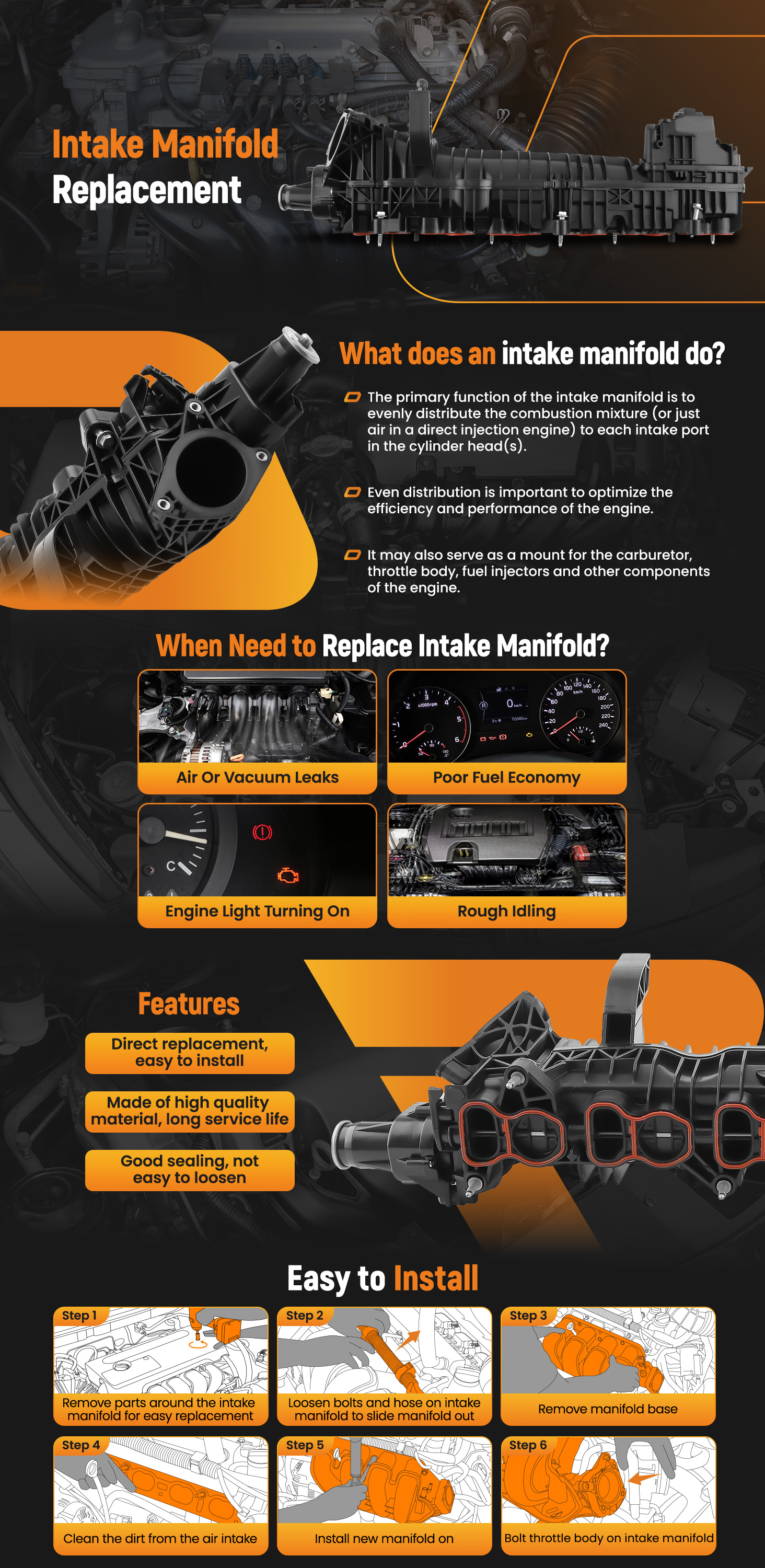 Dank seiner präzisen Konstruktion garantiert der Ansaugkrümmer eine perfekte Passform und ist einfach zu installieren, wodurch die Gesamtleistung Ihres Fahrzeugs verbessert wird.