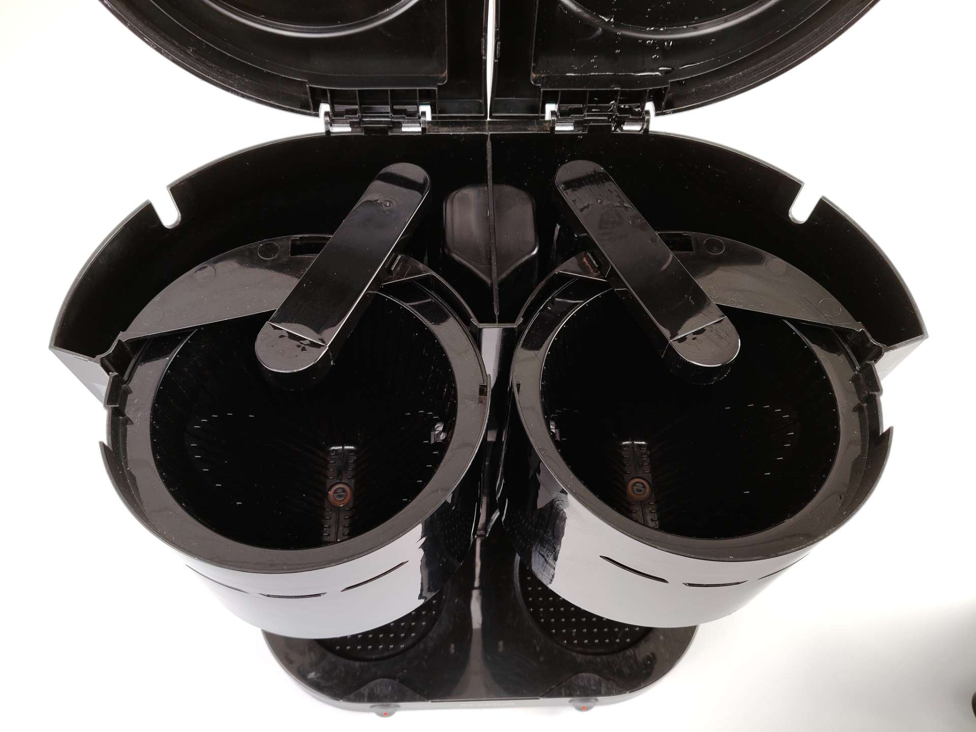 Double plaisir de boire du café en même temps, préparation simultanée de deux thermos de café pour 8 tasses. Rangement intégré du câble, remplissage facile du réservoir d'eau grâce à une grande ouverture.
