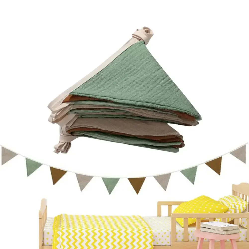 Nursery Bunting Banner Flags Washable Cotton Fabric Triangle Shaped Hang Garland