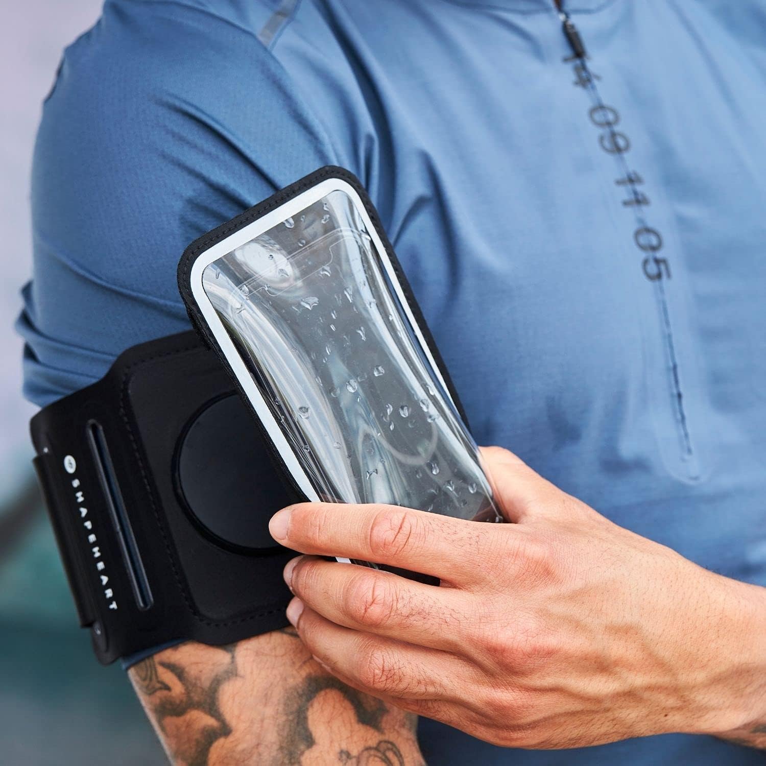【¿Cómo funciona? 】 Es muy sencillo. Introduce tu teléfono en el bolsillo. Pon música o abre una aplicación. Solo tienes que colocar la funda en la pulsera y listo. Sin