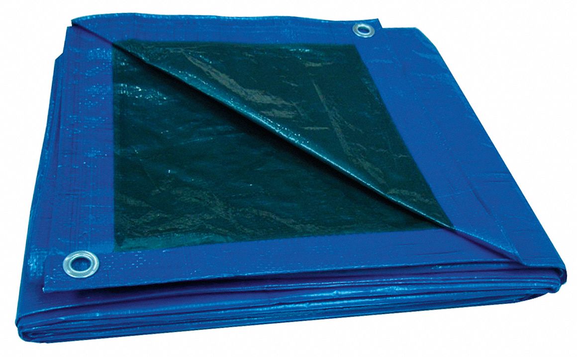Tarp, Tarp Material Polyethylene, Cut Size 20 x 20 ft, Finished Size 19 ft x 19 ft 6 in, Tarp Finished Length 19 ft 6 in, Tarp Finished Width 19 ft, Tarp Seam Finish Heat Sealed, Rope Reinforced, Tarp Resistant Features Mildew Resistant, Tear Resistant, UV Resistant, Tarp Strength Standard Duty, Water Resistant/Waterproof Waterproof, Color Blue, Green, Grommet Material Aluminum, Grommet Spacing 36 in, Fabric Weight 3.4 oz/sq yd, Thickness 5.1 mil, Breathable No, High-Visibility No, Insulated No