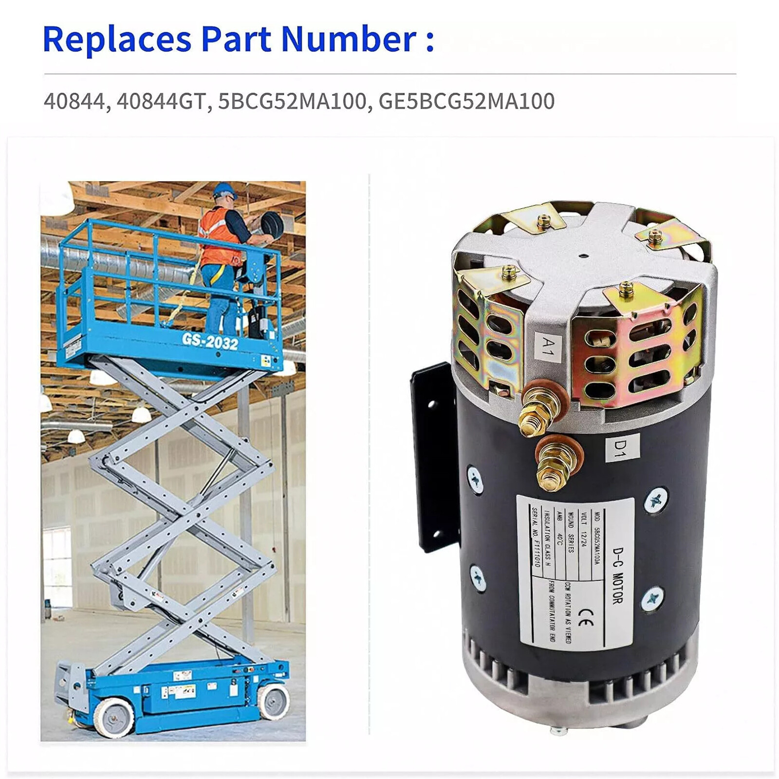 For Genie TZ-50/30 GS-3232 GS-2046 GS-1930 GS-1530 40844GT 24V/48V Motor