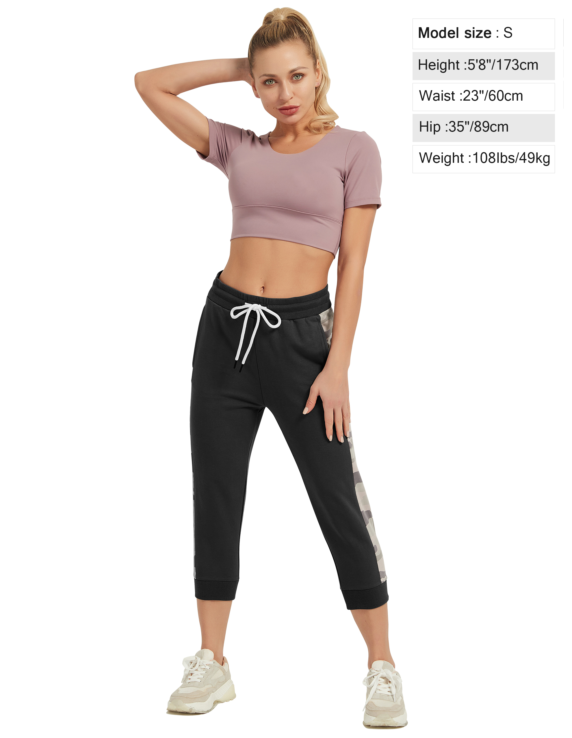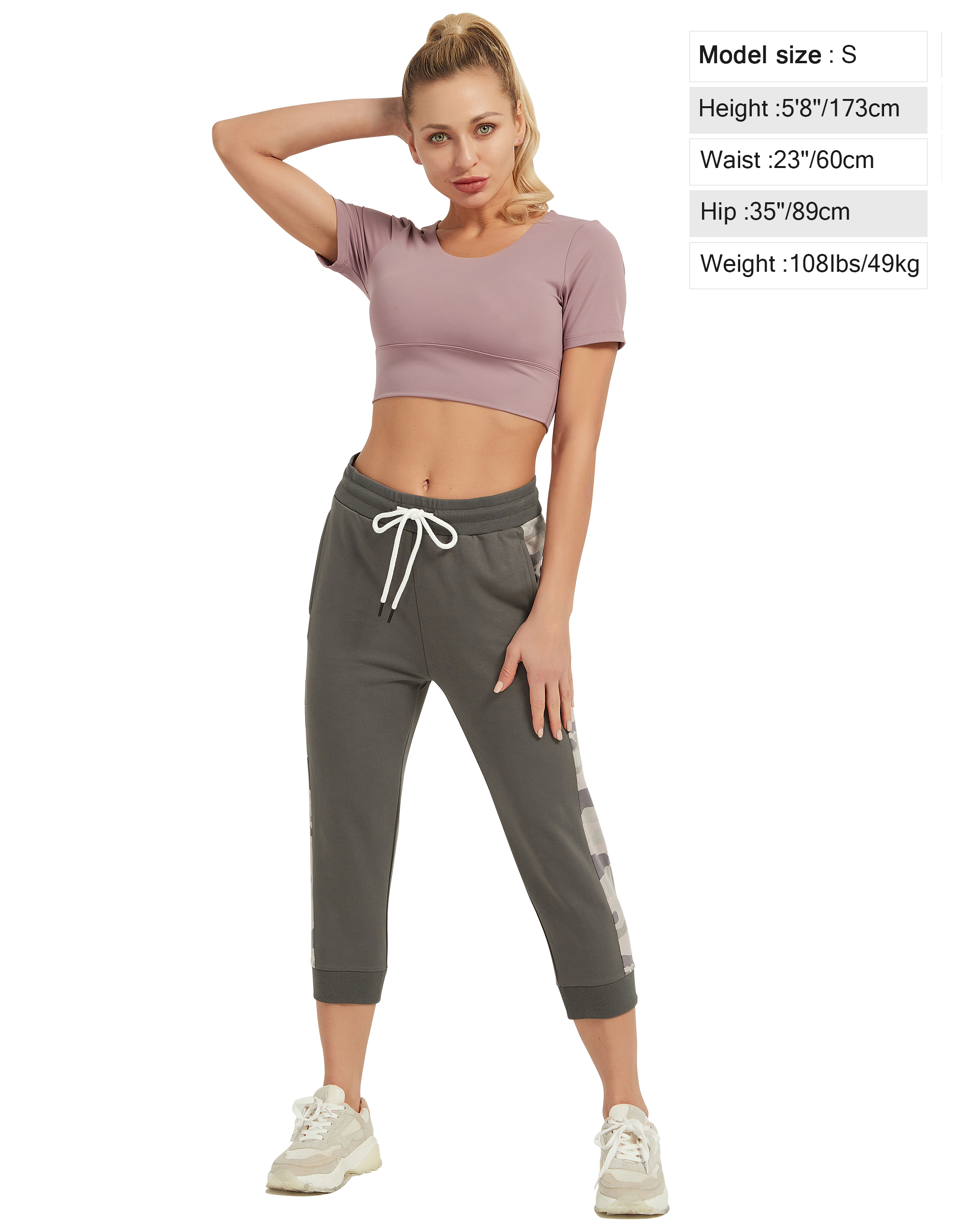 FITTING - Slim and tapered fit for a relaxed, easy feel. Great to lounge in, or wear as your workout clothes. Our capri jogger offers comfort and style as you move about your day.Perfect for many body types. Please use the chart to find your suitable size.