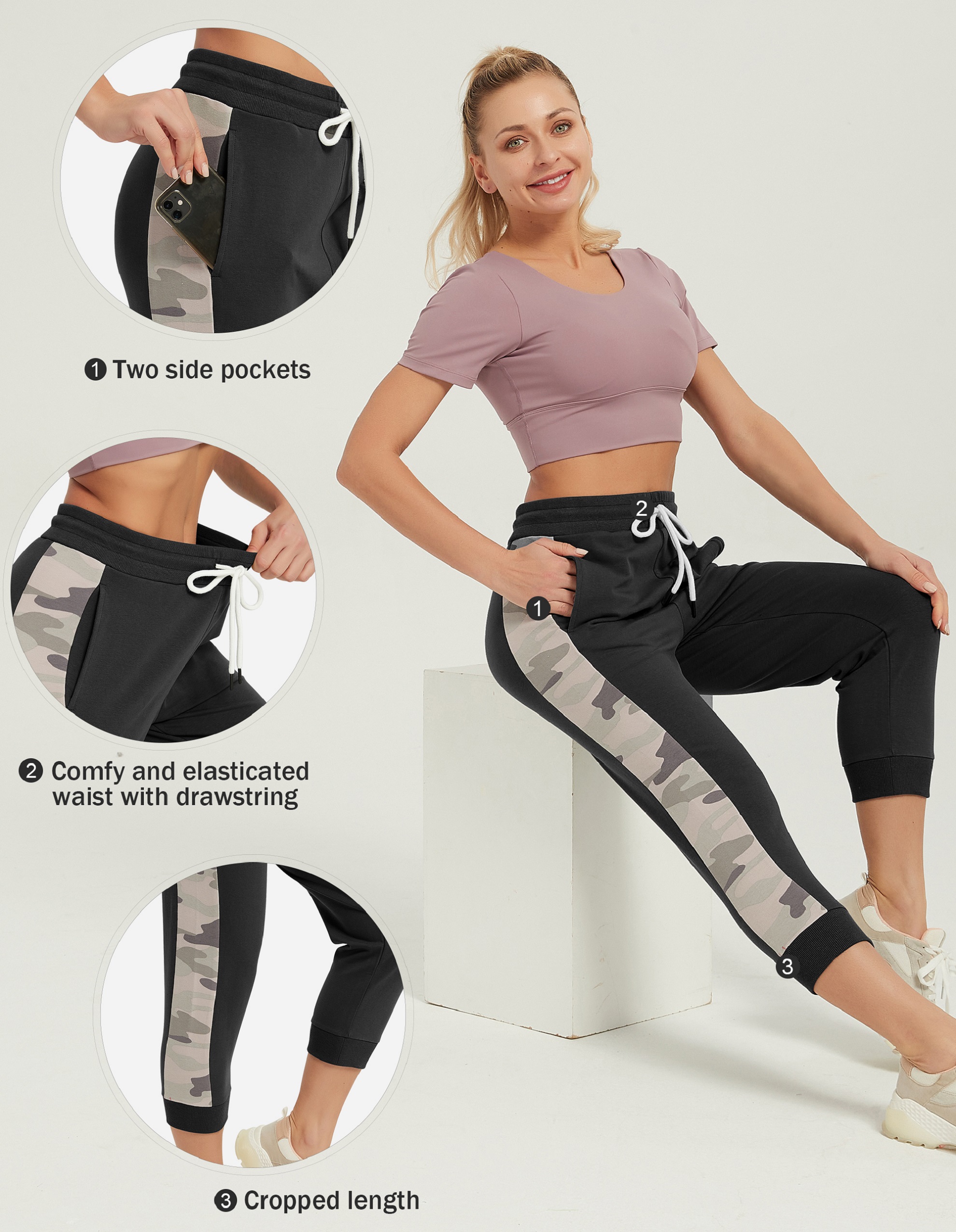 DETAILS - The Special Magic Capri Sweatpants feature an elastic waistband, tapered leg fit with ribbed cuff and side slash pockets. The camo print panel elevates your stylish active look