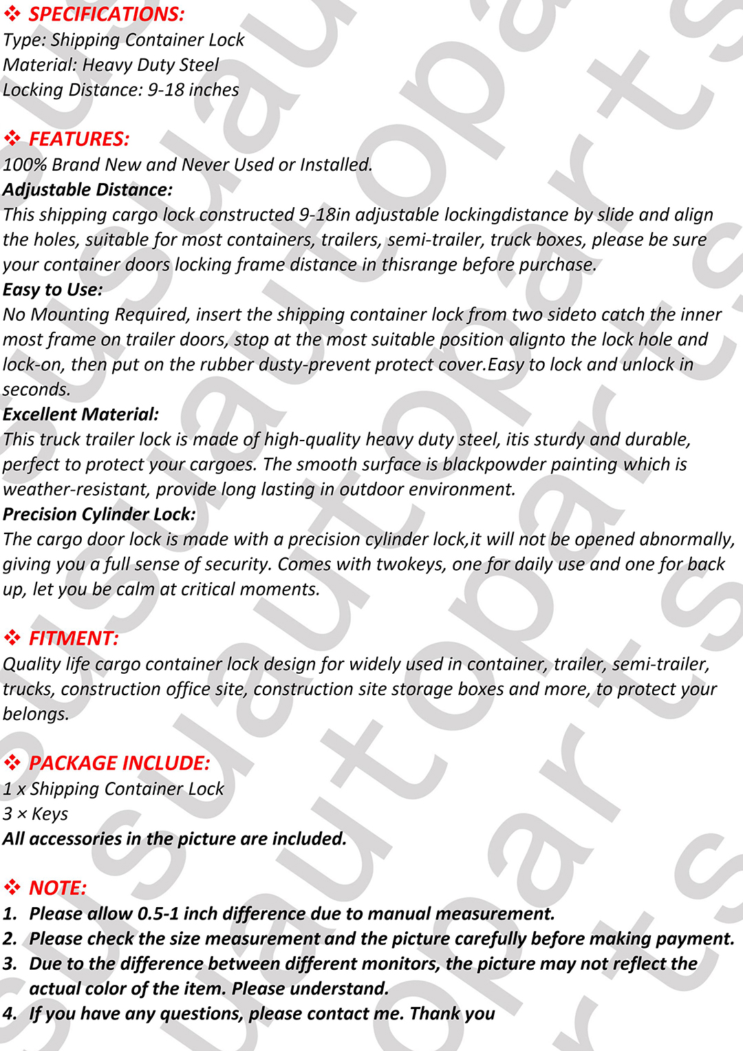 4.Buyer is responsible for all return shipping charges.