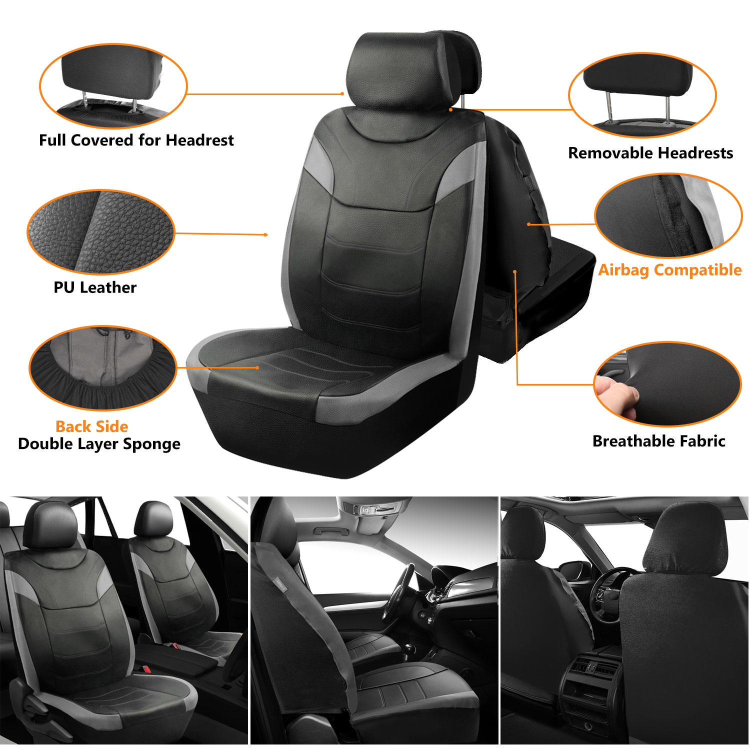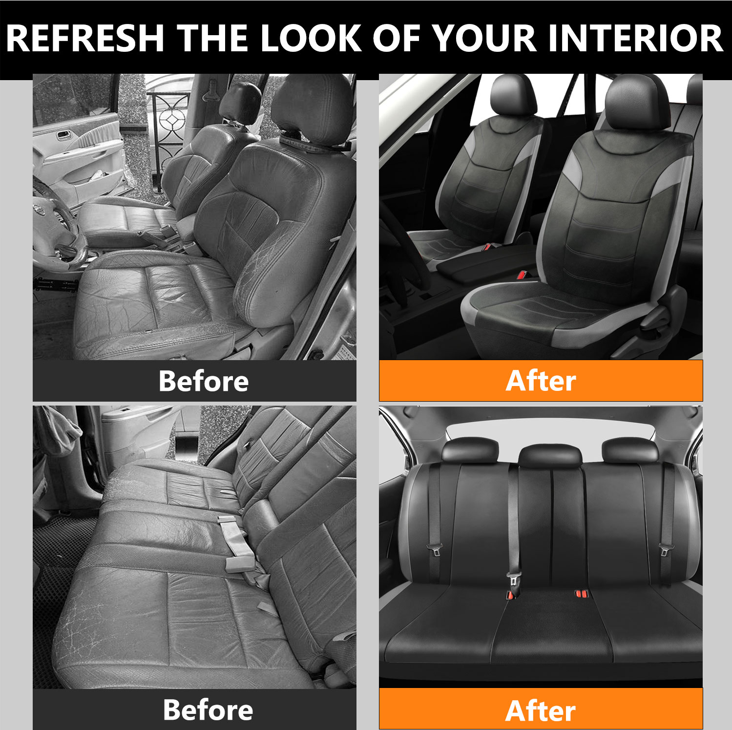 Made from high-quality thin PU leather, this seat cover set delivers a sleek, low-profile look that feels soft to the touch while still being durable enough to resist spills, scratches, and daily wear.